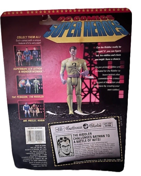 Leap into the world of superheroes with the 1989 DC Comics Action Figures set, featuring the iconic Superman and the enigmatic Riddler. These figures embody the spirit of the classic US Comics tradition, capturing the essence of the characters that have captivated audiences for generations.Crafted with attention to detail, these collectibles are a must-have for fans of the Superman series and enthusiasts of the Superheroes genre. Published by DC Comics, they represent a timeless addition to any collection, inviting you to bring a piece of the action into your home.