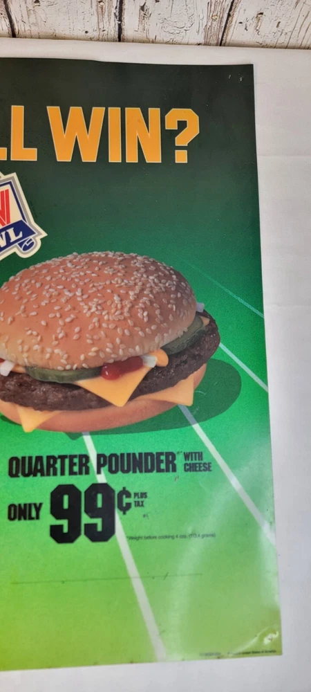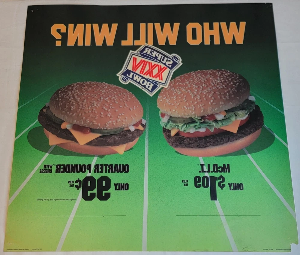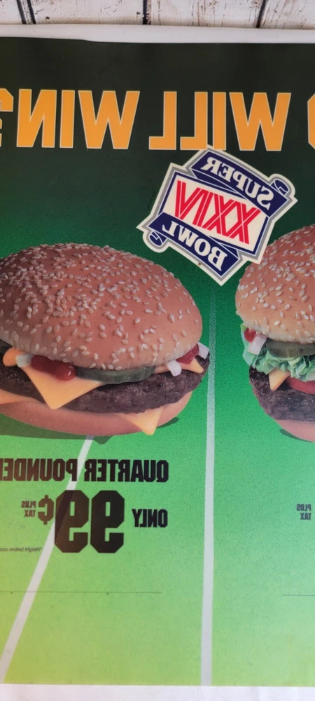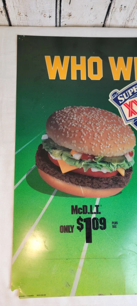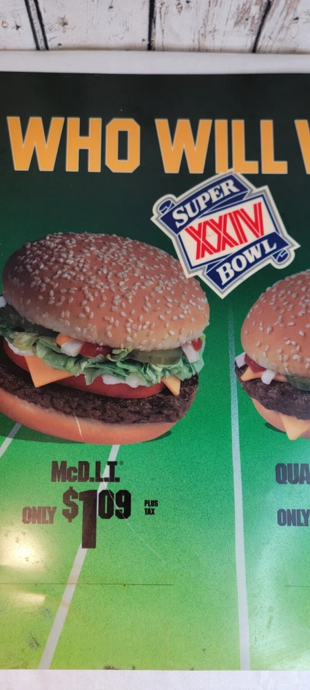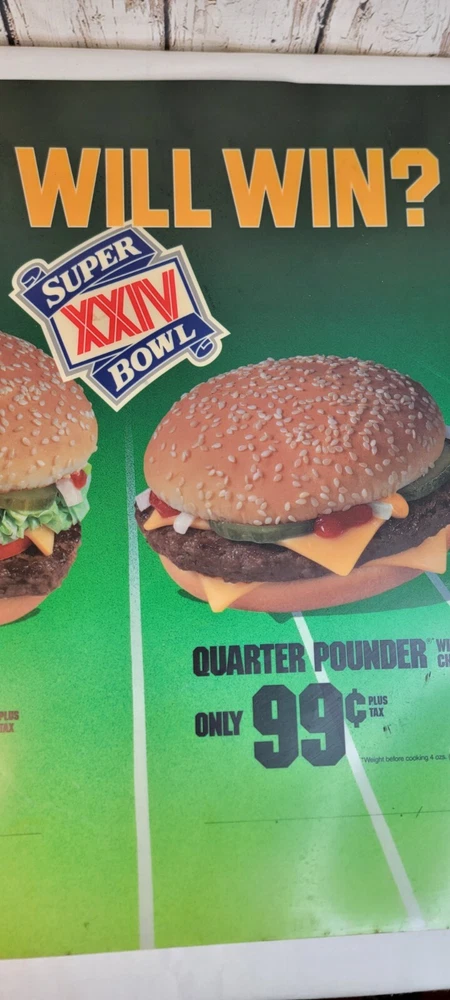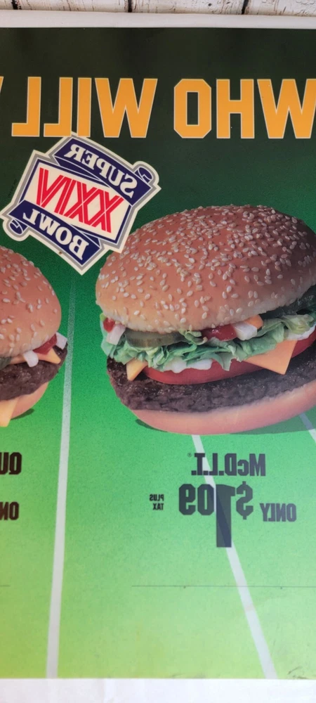 1989 McDonald's Who Will Win Super Bowl XXIV Translite Store Display Sign