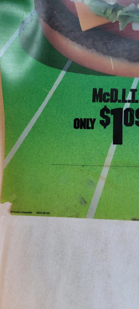 Theme: Food & Beverage Year: 1989 Country/Region of Manufacture: United States Team: Teams Brand: McDonald's Date of Creation: 1989 Color: Multi-color Original/Reprint: Original Original/Reproduction: Original Type of Advertising: Sign Player: Players
