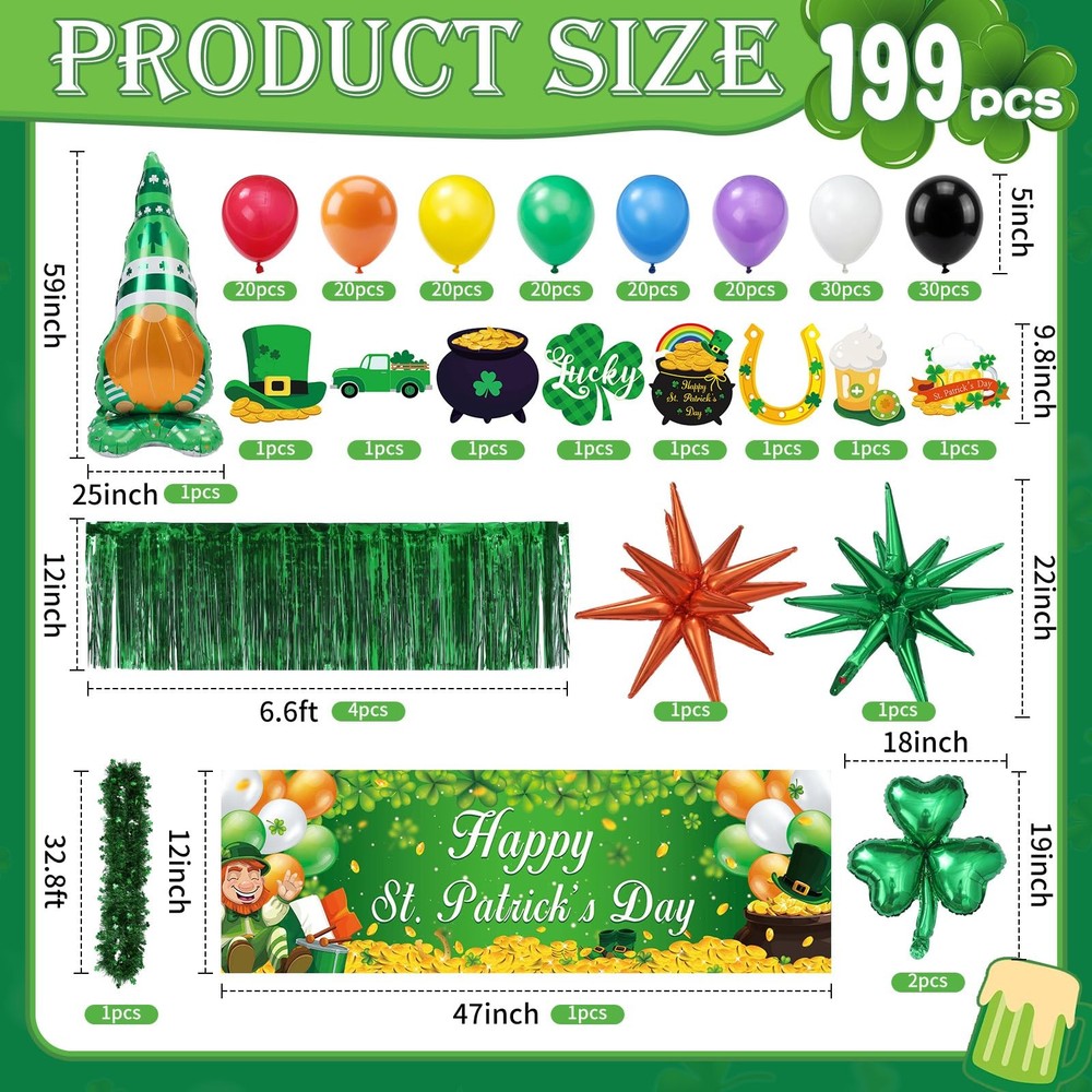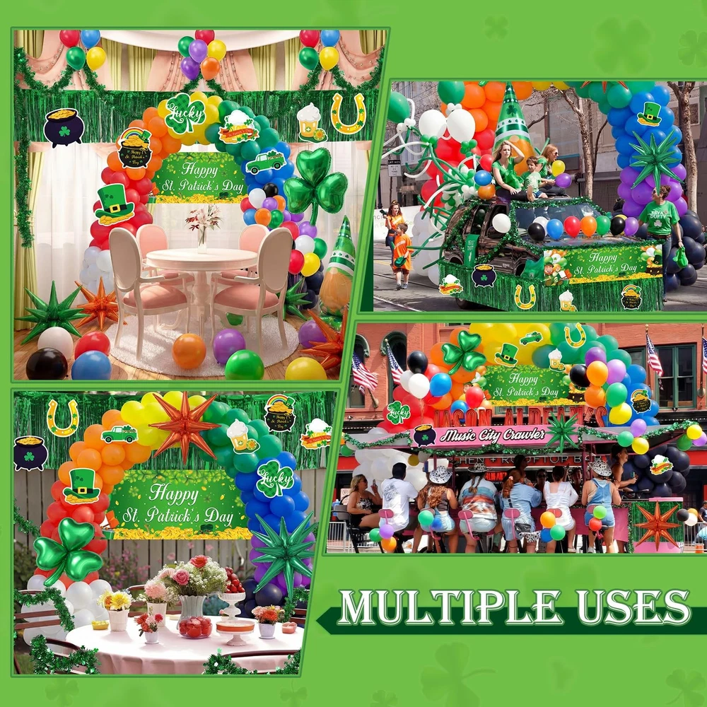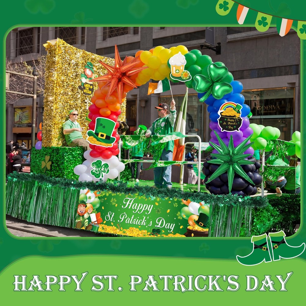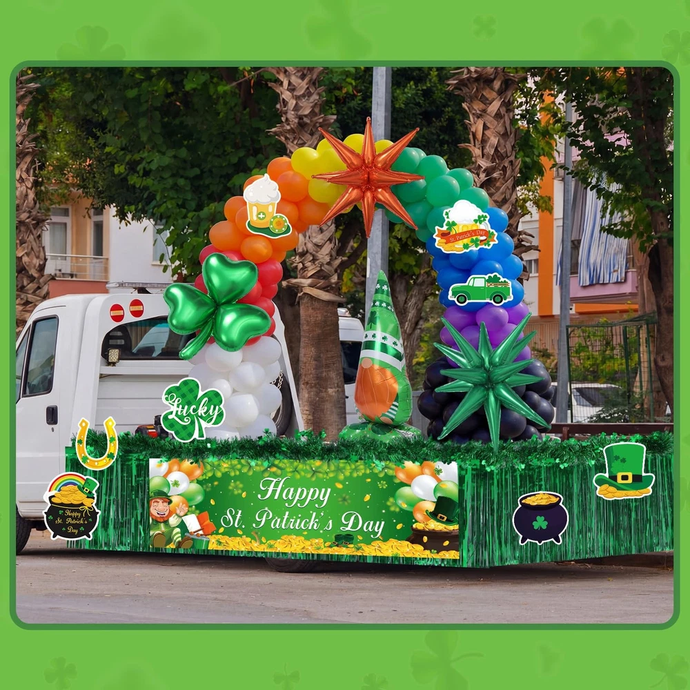 Features: Crafted from sturdy materials, these decorations resist tearing and fading, allowing you to enjoy them for multiple events. Simply them after use and bring them out again for future celebrations. With vivid colors and festive patterns, this set instantly draws attention and elevates your decor. Whether used indoors or outdoors, it creates a stunning backdrop that makes your event truly memorable. Specifications: Material: quality polyester and plastic Color: blue Size: suitable for Trailers Package includes: 1 x Welcome to Candy banner 4 x Vibrant pink foil fringe 180 x Balloons 1 x Pink Tinsel Garland 8 X Pastel theme candy lane theme PVC decorations 6 x Round Lollipop Inflatable Balloons 2 x Candy cane lane Inflatable Balloons 1 X Candy Balloon 8 x Candy shaped Honeycomb(green, blue, pink, yellow) Notes: Manual measurement, please allow slight errors on size. The colors may exist slight differences due to different screen displays Product Include: this St. Patrick's Day theme Parade Float decorative kit includes a full set of balloon arch, 1 Happy St. Patrick's Day banner, 4 vibrant green foil fringe, and 180 pcs balloons in blue, white, green, yellow, red, black, orange colors; 8 pcs St. Patrick's Day theme PVC decorations, 1 pcs leprechauns Inflatable balloons, 2 pcs Shamrock Inflatable balloons, 2 pcs Huge Explosion Star Aluminum Foil Spike Balloons in green, orange colors; 1 pcs green Tinsel Garland Ideal Size: the St. Patrick's Day theme balloon arch set is adaptable according to your decor needs; The Happy St. Patrick's Day banner measures 47 x 16 inches, 4 green foil fringe 78.7inch; The St. Patrick's Day shaped PVC decorations about 9.8inch; The leprechauns Inflatable balloon about 59 x 25inch; The Shamrock Balloons about 19 x 18 inch; The balloons about 5 inches, ; The green Tinsel Garland about 32.8ft; The Huge Explosion Star Aluminum Foil Spike Balloons about 22 inches Ideal Material: crafted from quality plastic, this St. Patrick's Day-themed decoration kit ensures durability and reliability; The balloons are made of sturdy latex, resistant to discoloration or deformation even after repeated use, making the arch and banner set a long-lasting choice for festive celebrations(The tools for securing the balloons are not ; Please prepare your own; ) Easy to Use: this St. Patrick's Day Parade Float Decoration Kit is designed for quick and effortless installation; Whether you're attaching it to a parade float, walls, windows, or tables, the process is simple-just use tape to hold everything in place; Decorating becomes easy, fast, and fun Versatile Use: beyond St. Patrick's Day parades, this St. Patrick's Day Parade Float Decoration Kit adds festive charm to countless occasions-be it a holiday party or grand opening; With its vibrant colors, it effortlessly enhances the atmosphere, bringing energy and cheer to any event