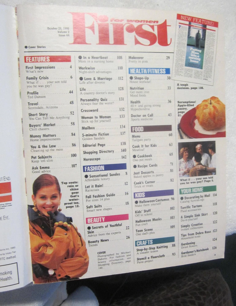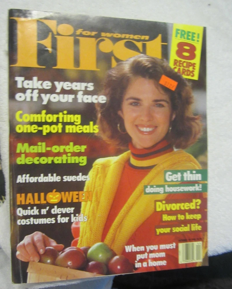 1990 For Women First Magazine October 29, Halloween Masks VTG,8 recipe cards VTG