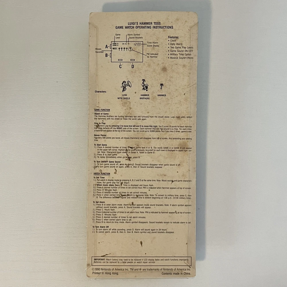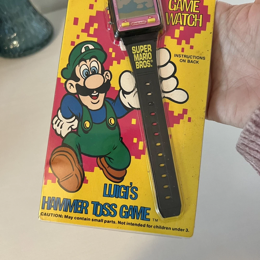 1990 Nintendo Super Mario Bros Game Watch Luigi’s Hammer Toss In Package I also have Princess Toadstool & Mario game watches, so check my listings for those!