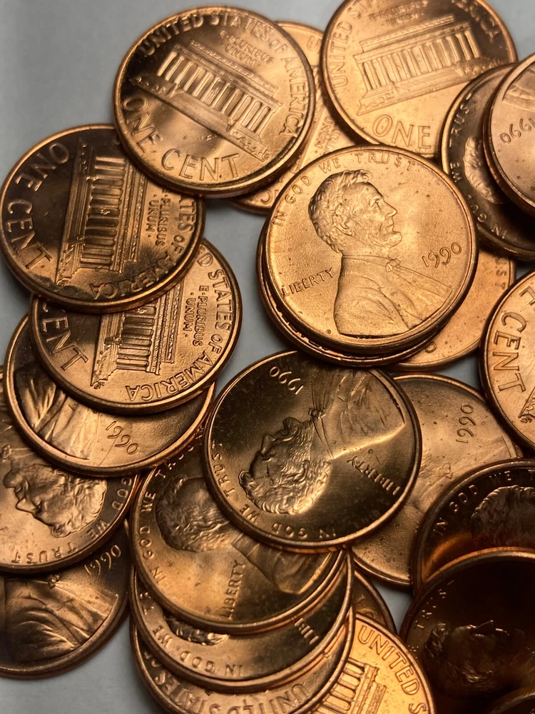 You are purchasing a full roll, 50 coins, of 1990 (P) Lincoln memorial cents that are in BU condition. The photo shows a typical roll of the rolls that I am selling. I have several of these rolls to sell. Please read a note about shipping: I strive to ship at my cost. If you pay more at checkout I can refund the overage you may pay. Rolls and lots: $4.50 for the first roll and $1.50 for each additional roll; up to $8.50. I can ship up to 30 rolls (paper wrapped) for $8.50. Single coins up to 3 coins sold at $20 or less: $1.11 for eBay standard envelope. I ship all of these at 3oz since it is safer that way. Beyond $20 value shipping is $3.50. The best way to handle multiple item purchases is to put them in your cart and then ask for an invoice from seller. That way I can provide these shipping prices without having to issue a refund. I am not in this business to make money on shipping but I must charge costs involved. There is no such thing as free shipping. It is paid for by someone, usually in the cost of the item.Please read a note about shipping: I strive to ship at my cost. If you pay more at checkout I can refund the overage you may pay. Rolls and lots: $4.50 for the first roll and $1.50 for each additional roll; up to $9.00. I can ship up to 30 rolls (paper wrapped) for $9.00. Single coins up to 3 coins shipping is $3.50. This may sound expensive but it is less than my cost. The best way to handle multiple item purchases is to put them in your cart and then ask for an invoice from seller. That way I can provide these shipping prices without having to issue a refund. I am not in this business to make money on shipping but I must charge costs involved. There is no such thing as free shipping. It is paid for by someone, usually in the cost of the item.