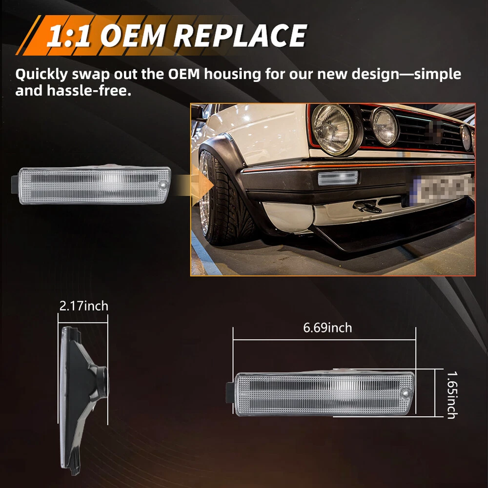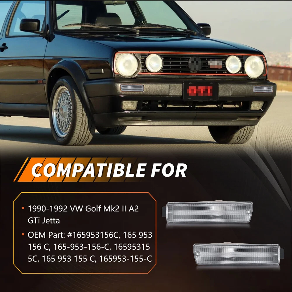 Product Detail Copyright©MotoringPlus Details This page features One Pair (2 Pieces) Euro-Spec Clear Lens Front Bumper Turn Signal Lights Kit For 1990-1992 Volkswagen Golf 2 / GTi 2 & Jetta 2 with Big Bumper These lamps are made with high-quality Polymethy l Methacrylate (PMMA) and Polycarbonate (PC) plastics No modification required! Each piece is easy to install with an OEM fit, Instantly transform your car and give it a modern and trendy appearance and feel! Note: Bulbs & socket adapters are NOT included Specifications: 100% Brand new and quality Lens Color: Clear A complete set of two lamps, replacement for the driver side & passenger sides Compatible With 1990-1992 Volkswagen Golf 2 / GTi 2 & Jetta 2 with Big Bumper Directly replace or repair your car's front bumper turn signal lamps CE DOT SAE approved Application: For 1990 1991 1992 Volkswagen Golf 2 / GTi 2 & Jetta 2 with Big Bumper Replace OEM # 165953155C, 165953156C; 165 953 155 C, 165 953 156 C; 165953-155-C, 165-953-156-C Please make sure you have available space in your car for these lamps to fit before placing or der. Package include: 2PCS Driver & Passenger side Front Bumper Turn Signal Lights (Clear Lens) Installation: Direct replacement the OEM parts without any modification needed Note: Professional installation is highly recommended! Returns Policy Shipping Policy Payment Method About US Contact Us Returns Policy Please check actual stock bulb model & housing size before purchasing replacement bulbs. Compatibility list on eBay listing is not a complete list and it is a known issue that there are errors on it. Half year warranty from the purchased date. Please contact us via ebay message before returning the defectived item. Our warranty does not extended to any products that are physically damaged or that are not under normal operating conditions as a result of misuse or improper installation on the buyers/user's part. Return items should include the original packaging and all accessories. Buyers MUST contact us for the returning address. In all cases, buyers pay shipping fees at their own cost to return products for exchange or refund. We will be responsible for the postage of replacements. Refund will be made upon receipt of the returned item. Our goal is to make sure you are a happy buyer and pleasant shopping with us. If you have any problems, please contact us immediately before leaving us any negative or neutral feedback. We understand the concerns and frustrations you might have, and will do our endeavor to resolve the issues. Please give us the opportunity to resolve any problem. Shipping Policy Item will be shipped from China / Hongkong Post by Standard International Post. All orders will be shipped to buyer's paypal shipping address within 24 hours after receiving your verified payment (Excluding Weekends and Public Holidays) International order may takes about 15-25 business day delivery time for most countries. Transactions on weekends or public holidays,item will be sent later on work time. Payment Method We accept Paypal ONLY. Unpaid transaction will be cancelled after 8 days About US Contact Us We are dedicated to providing you the best shopping experience and high quality items at a very low price. If you are satisfied with our service,Please remember to leave us 5 STAR for All Detailed Seller Ratings If you found any problem/issue of our merchandise/service,please let us know before leaving any negative feedback! Please feel free to contact us if you have any question. Any message will be replied within 24 hours. We will try our best to help! Home Payment Shipping About us Contact us Copyright©MotoringPlus Home Payment Shipping About us Contact us Store Categories Store Categories SIDE MARKER LIGHT TURN SIGNAL LIGHT TAIL BRAKE LIGHT LICENSE PLATE LIGHT DECODER OTHERS Other Product Detail Copyright©OFFKAT Why Buy From Us Why Buy From Us Details This page features One Pair (2 Pieces) Euro-Spec Clear Lens Front Bumper Turn Signal Lights Kit For 1990-1992 Volkswagen Golf 2 / GTi 2 & Jetta 2 with Big Bumper These lamps are made with high-quality Polymethy l Methacrylate (PMMA) and Polycarbonate (PC) plastics No modification required! Each piece is easy to install with an OEM fit, Instantly transform your car and give it a modern and trendy appearance and feel! Note: Bulbs & socket adapters are NOT included Specifications: 100% Brand new and quality Lens Color: Clear A complete set of two lamps, replacement for the driver side & passenger sides Compatible With 1990-1992 Volkswagen Golf 2 / GTi 2 & Jetta 2 with Big Bumper Directly replace or repair your car's front bumper turn signal lamps CE DOT SAE approved Application: For 1990 1991 1992 Volkswagen Golf 2 / GTi 2 & Jetta 2 with Big Bumper Replace OEM # 165953155C, 165953156C; 165 953 155 C, 165 953 156 C; 165953-155-C, 165-953-156-C Please make sure you have available space in your car for these lamps to fit before placing or der. Package include: 2PCS Driver & Passenger side Front Bumper Turn Signal Lights (Clear Lens) Installation: Direct replacement the OEM parts without any modification needed Note: Professional installation is highly recommended! Returns Policy Shipping Policy Payment Method About US Contact Us Returns Policy Our 60-day Satisfaction Guarantee assures our customers that they will receive all orders promptly and exactly as described. In addition, it allows customers to return new and unused products in their original factory condition for any reason within 60 days from the date of purchase. Buyers are responsible for appropriate packing, returning shipping cost, insurance and returning the item in "new" condition. Used items will not be accepted for return. We will replace the returning item with an identical item, issue a full store credit or a full refund. Our goal is to make sure you are a happy buyer and pleasant shopping with us. If you have any problems, please contact us immediately before leaving us any negative or neutral f