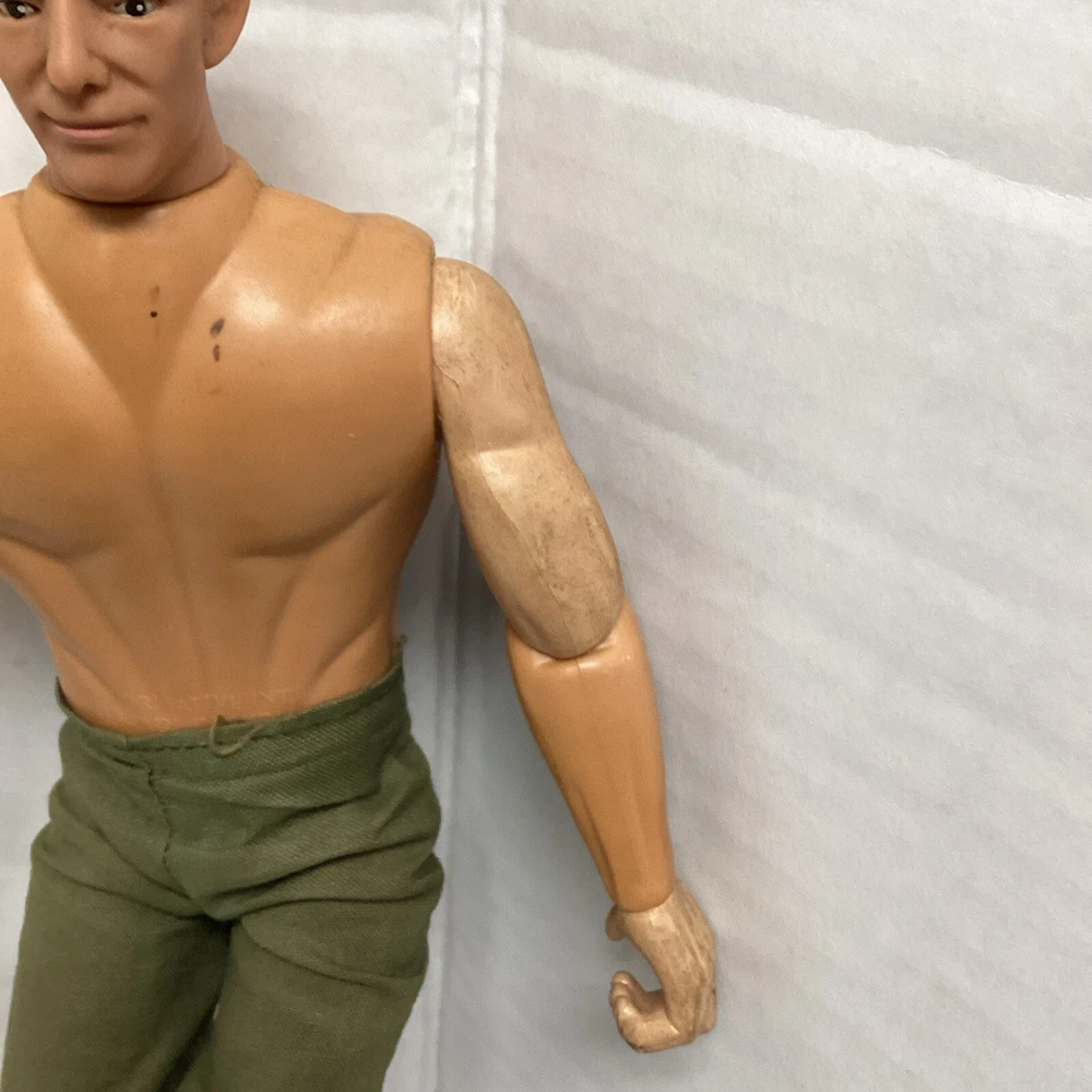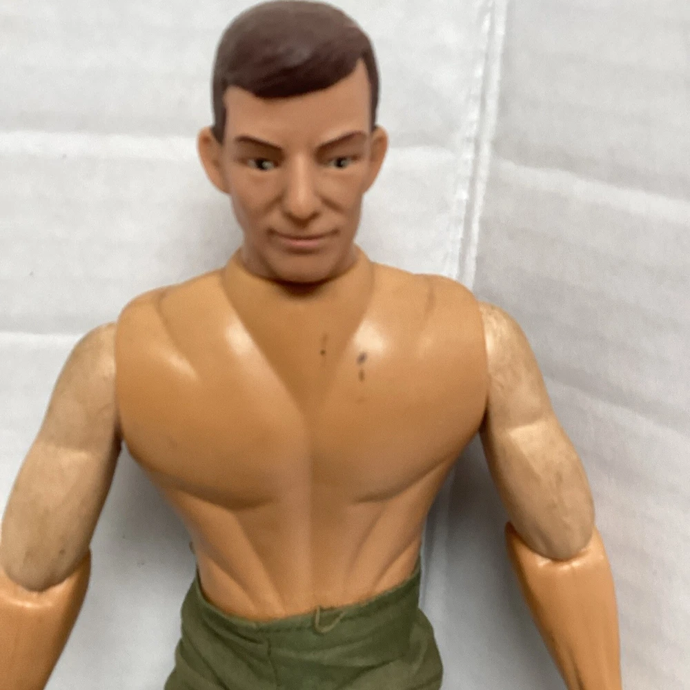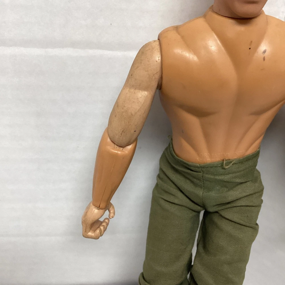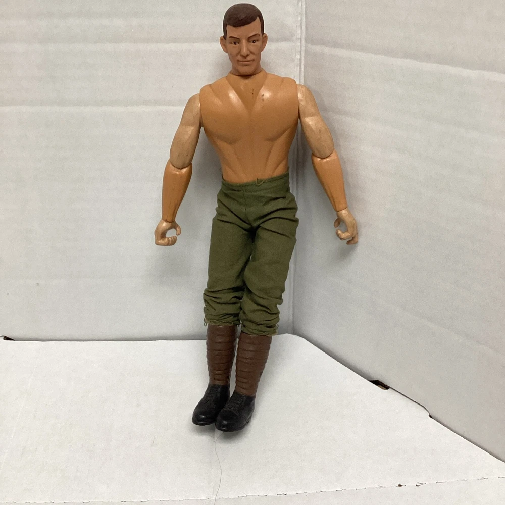 This 1990s GI Joe action figure is a must-have for collectors of military and adventure-themed toys. The figure comes with camo pants and is an original, not a licensed reproduction. The brand behind this vintage piece is Formative International and it was manufactured in the 1990s. The G.I. Joe franchise is known for its iconic characters and this action figure is no exception. It is perfect for fans of the series and collectors alike. Don't miss out on this opportunity to add a piece of history to your collection. No shirt.