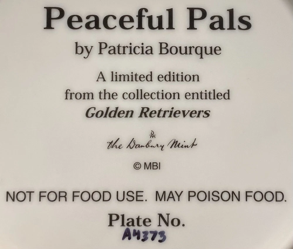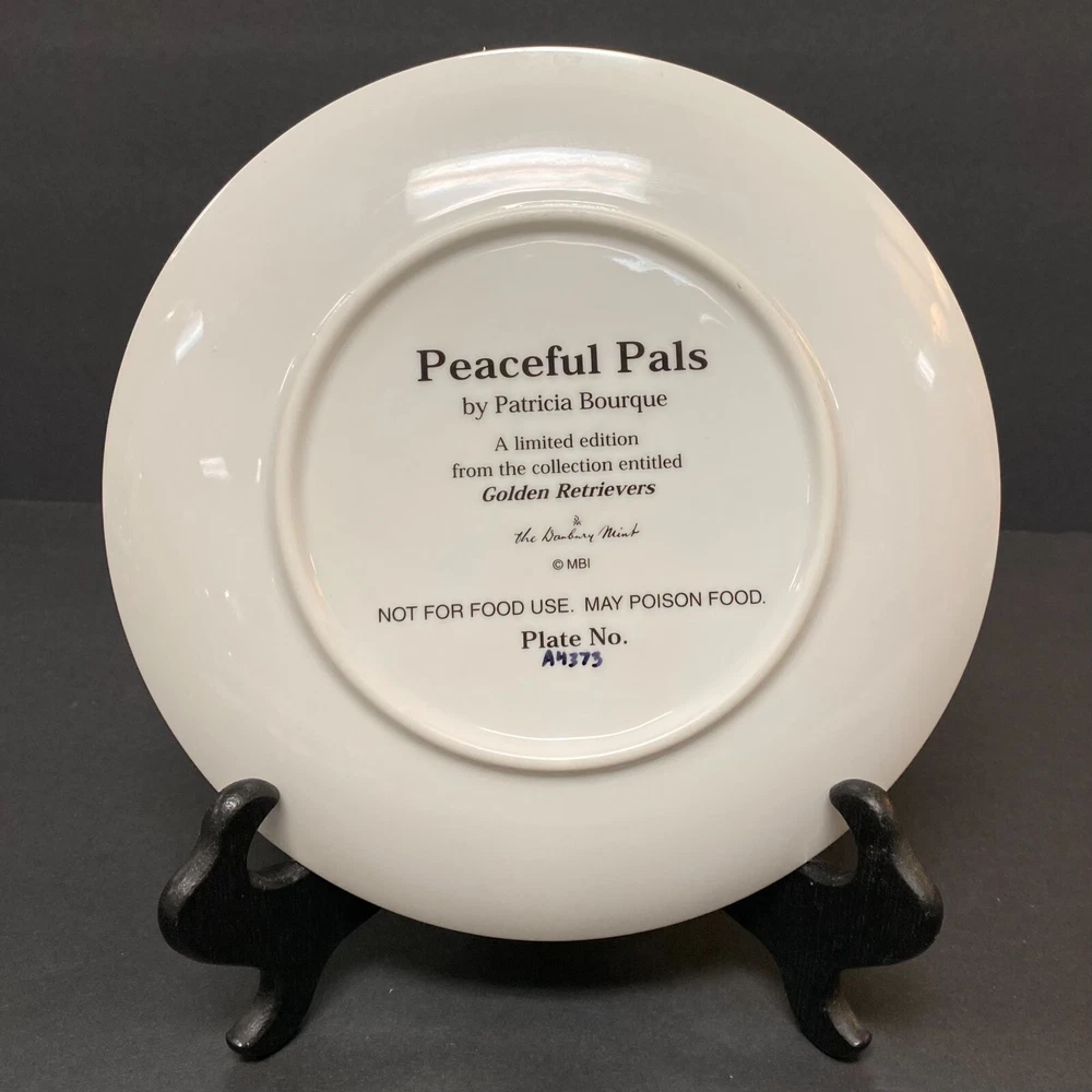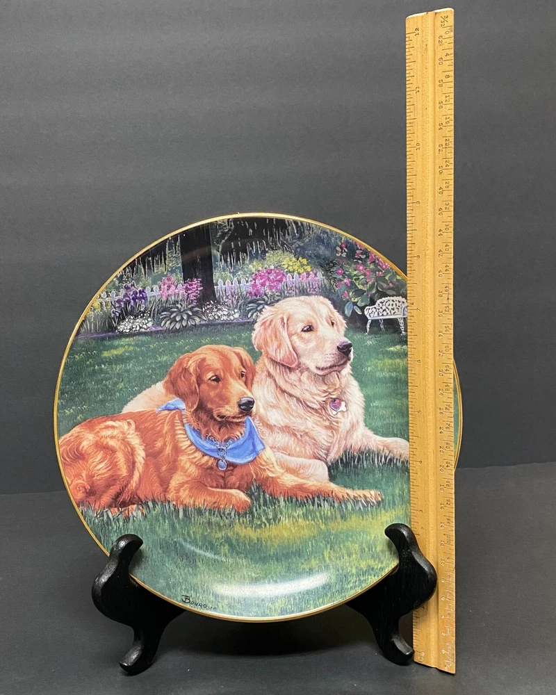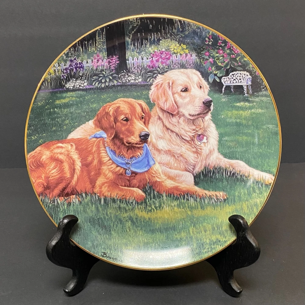 1990's "Peaceful Pals" Vintage Limited Edition Plate - Danbury Mint P late #: A4373 Art by Patricia Bourque " Golden Retrievers " Series NOT TO BE USED FOR FOOD. DECORATION PURPOSES ONLY. [SE-DC6]