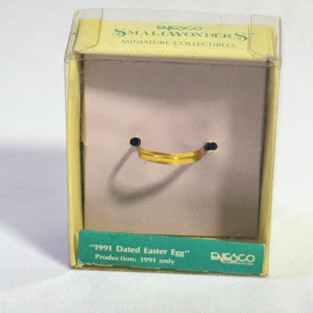 Add a touch of springtime charm to your collection with this delightful Easter Egg Figurine from Enesco's 1991 Small Wonders Miniature Collection. Crafted in resin, this whimsical ornament features a multicolored Easter egg adorned with a cute bunny character, embodying the joy and vibrancy of the Easter season. With a height of 2.25 inches, this small yet captivating figurine is perfect for adult collectors who appreciate asymmetrical designs. Whether it's to enhance your Easter decor or to expand your figurine collection, this piece, echoing the era of the 1990s, brings the essence of garden spring festivities right to your home.