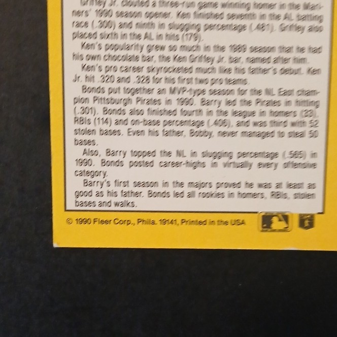 1991 Fleer Second Generation Stars Ken Griffey Jr. Barry Bonds #710