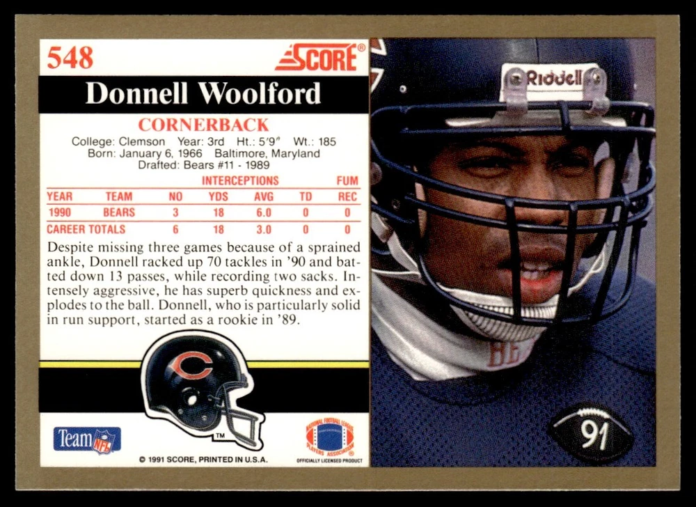 Sport: Football Graded: No Card Number: 548 Autographed: No Card Size: 3½" x 2½" Year Manufactured: 1991 Season: 1991 Character: Donnell Woolford Game: Unspecified Type: Sports Trading Card Team: Chicago Bears Player/Athlete: Donnell Woolford Set: Score Franchise: Football Vintage: Yes Original/Licensed Reprint: Original Card Name: 1991 Score Donnell Woolford Chicago Bears #548
