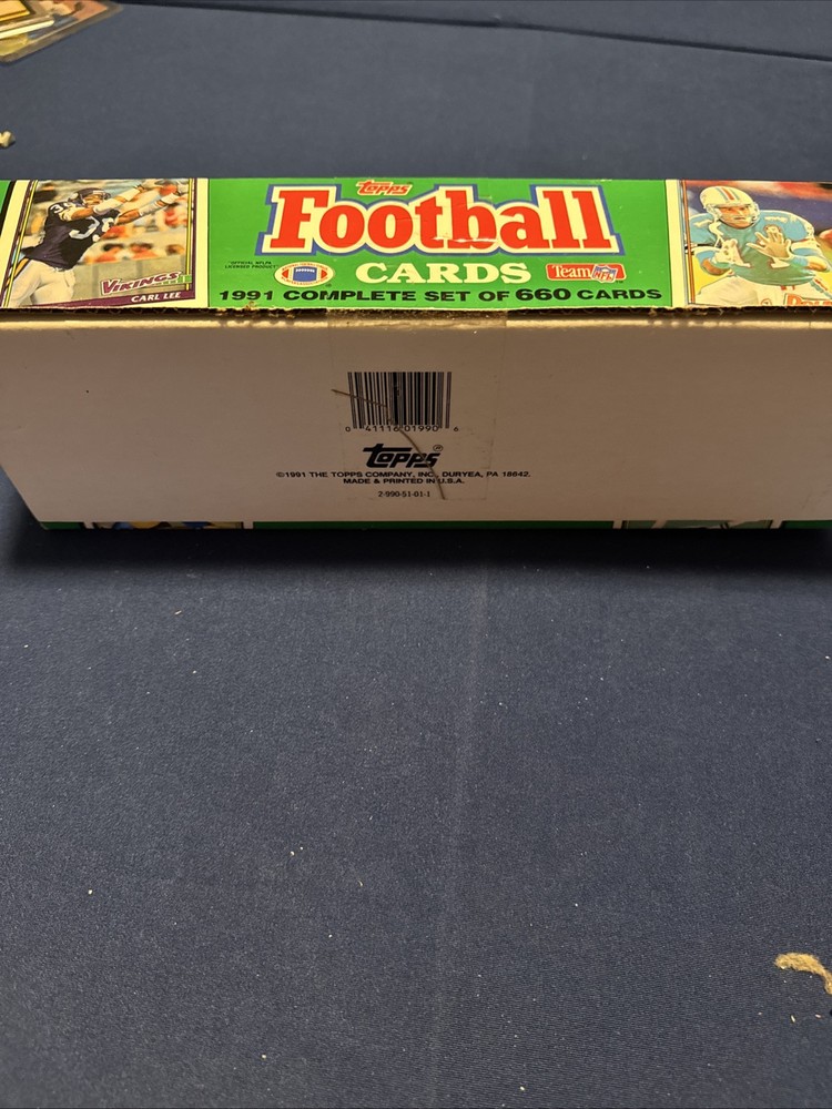 The Topps 1991 NFL Football Cards Factory Set features a total of 660 cards made of card stock and plastic material. This set includes players like LaDainian Tomlinson, Emmitt Smith, Barry Sanders, Walter Payton, Drew Brees, Michael Vick, John Elway, and Chad Johnson, representing teams such as the New Orleans Saints, Houston Texans, Chicago Bears, Dallas Cowboys, and Los Angeles Chargers. Each card is part of the National Football League (NFL) and is from the 1991 season, with notable features like being serial numbered, a base set, rookie cards, collectors edition, and a checklist included in the box configuration.