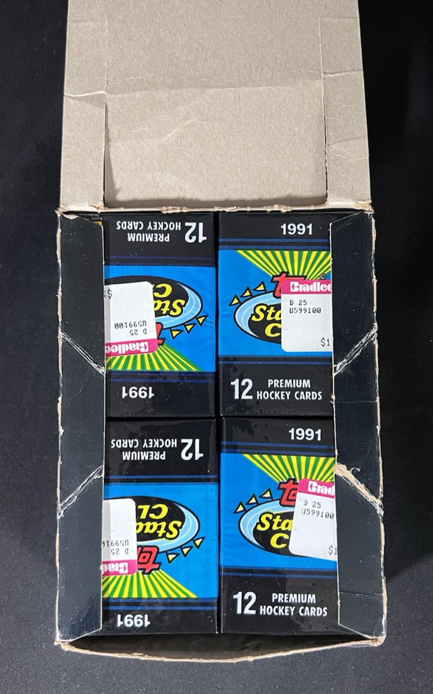 1991 Topps Stadium Club Hockey Wax Box 36 Sealed Packs Wayne Gretzky 36 Packs Per Box, 12 Cards Per Pack = 432 Cards Will Consider Reasonable Offers. Please see the high-res images for details. Feel free to reach out with any questions or if you're looking for something specific. Please follow the Big Joe Knows Cards Store for new items coming soon! We’ll be listing from a large and carefully curated collection of Vintage & Modern Baseball, Basketball, Football, Hockey, Garbage Pail Kids, Magic: The Gathering, Marvel, Pokémon, and Disney cards, etc. CONTENTS OF UNOPENED PACKS: - With the exception of the players visible on the front and/or back of a pack, there are no guarantees about the contents of any unopened material. Higher value packs have been authenticated and/or graded by the foremost industry experts from PSA & BBCE. Packs that have not been wrapped or graded by BBCE or PSA are being SOLD AS FACTORY SEALED . If you have any questions about the authenticity of any product being sold, please feel free to ask for additional photographs and/or information. ITEM(S) IN IMAGES: - Unless otherwise noted, the item(s) in the images are of the exact product that you will receive. Please be sure to review the high-resolution images. CARD CONDITION OF RAW/UNGRADED CARDS: - When assigning the condition of a card, we use the eBay card condition guidelines , which include i) Poor, ii) Very Good, iii) Excellent, and iv) Near Mint or Better. Please note, these four conditions (and standards) do not necessarily correspond directly with professional grading services. - When e stimated grades are provided, they are being provided for evaluation purposes only. While the best efforts have been made to provide an accurate assessment of the condition of the cards, these estimates are not a guarantee of grades. Actual grades assigned by a professional grading service (PSA, SGC, etc.) may be lower or higher than the estimates that have been provided. - If there is an issue with the card that does not seem to show up in the scan, best efforts will be made to call them out in the ' Condition description ' section of the listing. When the word ' Mint ' is used in the listing title and/or description, it means that, in my opinion, the card has a very good chance on receiving a grade of 8 NM-MT, 9 Mint, or 10 Gem Mint from a reputable professional grading service like PSA. Again, this description is no guarantee of the actual grade that a card may receive and should be used for evaluation purposes only. SHIPPING & COMBINED SHIPPING: - We take great care to ensure that our collectibles arrive in the same condition that you purchase them. All of our shipments are insured, and we photograph/record the packaging of our high-end products. - When requested, we will do our best to combine shipping when multiple items are purchased. There is a $1.99 handling fee built into the shipping cost you see listed on each item. When shipping is combined, the total shipping cost will be equal to a) the actual cost of shipping the combined items via your preferred method; plus, b) a handling fee ($1.99 on the first item and $0.99 for each additional item). Typically, you will have the option to select eBay's Standard Envelope Shipping or USPS First Class Mail. - Please note, when we ship raw/ungraded cards via eBay's Standard Envelope Shipping Program, the cards will be placed in a new penny sleeve inside a new Card Saver I. The card(s) are then placed into a cardboard mail stiffener secured by painter's tape. Due to the weight and size requirements of the Standard Envelope program, we cannot combine more than three (3) cards into a Standard Envelope. We will not combine shipping using eBay's Standard Envelope Program when the combined value of the cards exceeds $25. You will have the option to have the cards shipped individually using the Standard Envelope or combine up to fifty (50) cards with a combined value of up to $500 via USPS First Class Mail.
