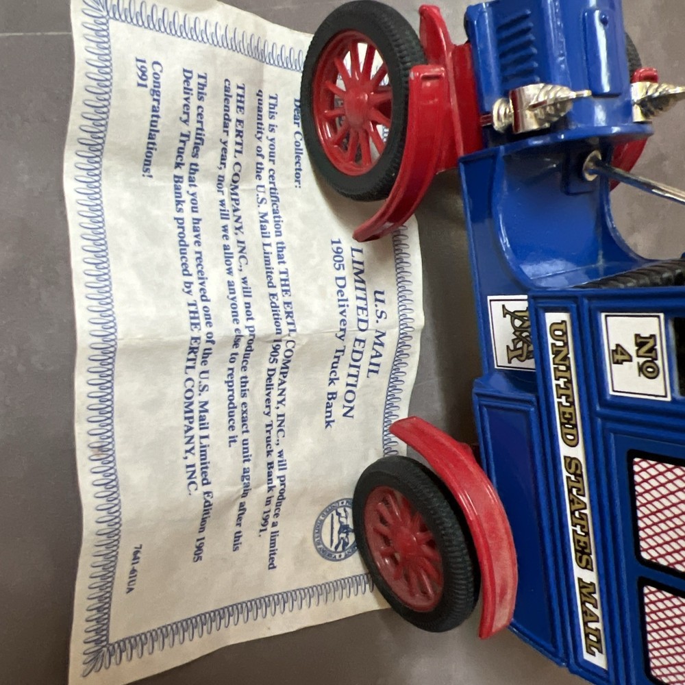 Vehicle Make:FordVehicle Year:1905Year of Manufacture:1991Country of Origin:United StatesVehicle Type:CarUPC:Does not applyColor:Multi-ColorScale:1:24Features:CertificateBrand:Ertlgtin13:Does not applyTheme:U. S. Mail