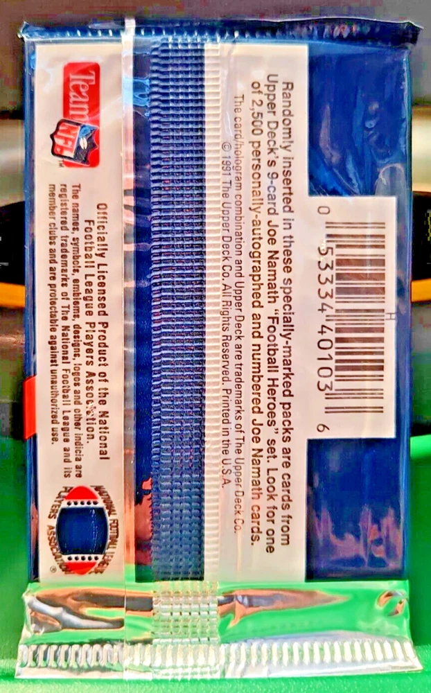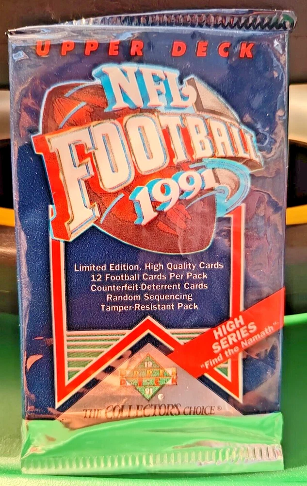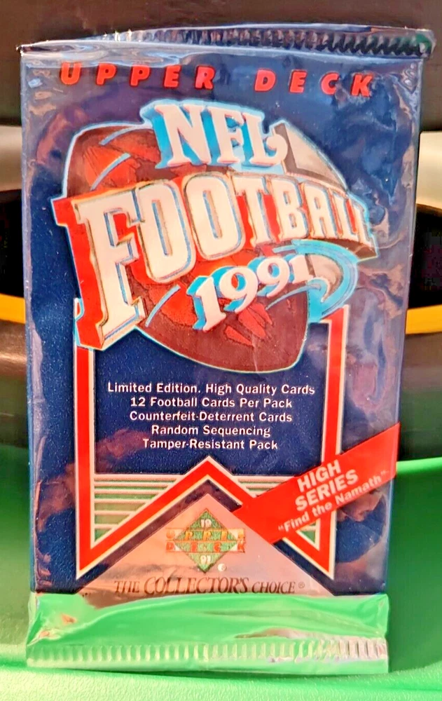 Here are the really cool 1991 Upper Deck High Series Limited Edition NFL Football 12 Card Packs! These packs are in PERFECT CONDITION, FACTORY SEALED and ready for your collection and/or grading! These are the HIGH SERIES LIMITED EDITION "FIND THE NAMATH" PACKS π₯π₯π₯ I do not have many of these left! Each pack from my collection offers a chance to add some rare, exclusive and highly sought-after cards to your collection. These also make GREAT gifts! I handle all of my cards very carefully with gloves, including the boxes and packs that are sealed, I always handle them with great respect. Rest assured you are getting some very high-quality cards! Price is per pack. As always, please feel free to reach out to me anytime and thank you for looking :)