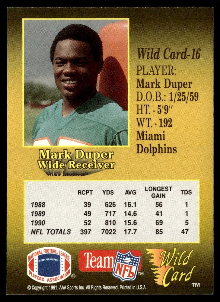 About Me Other Listings Feedback Add to Favorites Contact Me Mesplay Enterprises 1991 Wild Card Mark Duper Washington Redskins #16 No stock photo / These are real scans or pictures Details Description: Mark Duper Category: Football Year: 1991 Product: Wild Card Team: Washington Redskins Card Number: 16 Dimensions: 3½" x 2½" SKU: FT B0001 R13 P (10) Listing By Kronocard trading cards software v2.7.0.1
