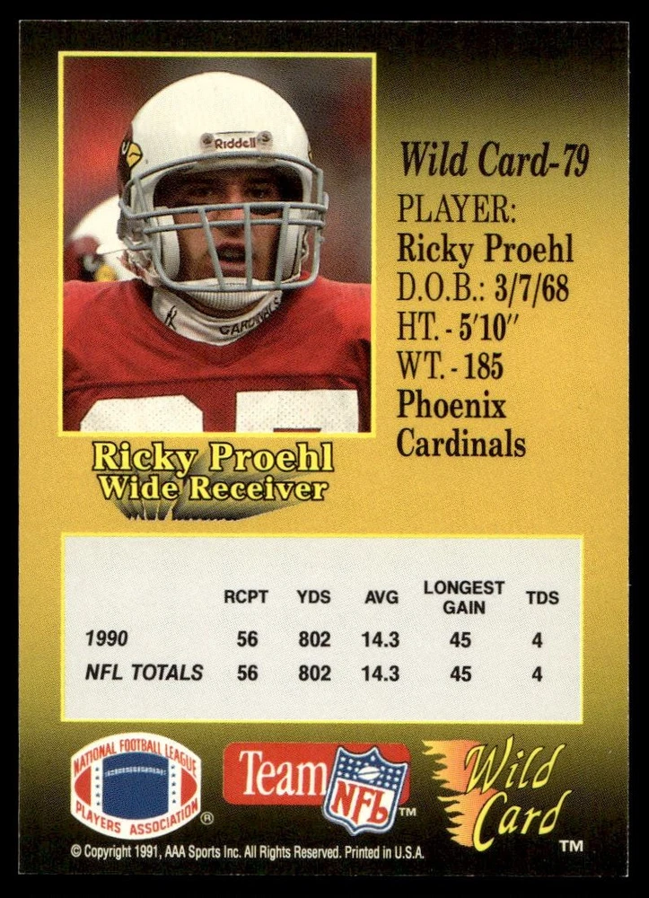 About Me Other Listings Feedback Add to Favorites Contact Me eBay Store JEm_Mint_Trading 1991 Wild Card Ricky Proehl Phoenix Cardinals #79 No stock photo / These are real scans or pictures Details Description: Ricky Proehl Category: Football Year: 1991 Product: Wild Card Team: Phoenix Cardinals Card Number: 79 Dimensions: 3½" x 2½" SKU: FT A0013 R02 A (33) Listing By Kronocard trading cards software v2.8.2.3
