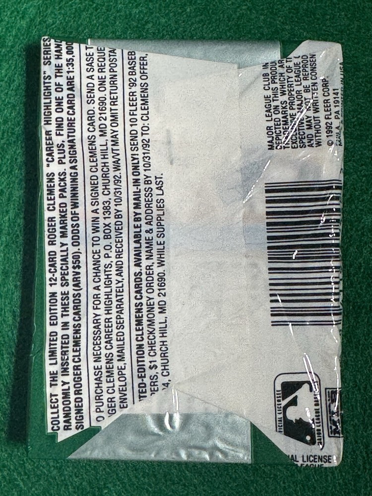This 1992 Fleer Baseball Wax Pack is a must-have for any sports trading card collector. The pack contains 17 standard-sized cards, including cards of famous players such as Barry Bonds, Ken Griffey Jr, and Nolan Ryan. The cards are made of high-quality card stock and are in excellent condition, making them a great addition to any collection. The pack is factory-sealed and contains one pack of 17 cards. It is perfect for fans of the Boston Red Sox, New York Yankees, and St. Louis Cardinals, as well as anyone who loves Major League Baseball. This vintage pack is a great find for collectors of sports trading cards, and it is sure to be a hit with anyone who loves baseball.