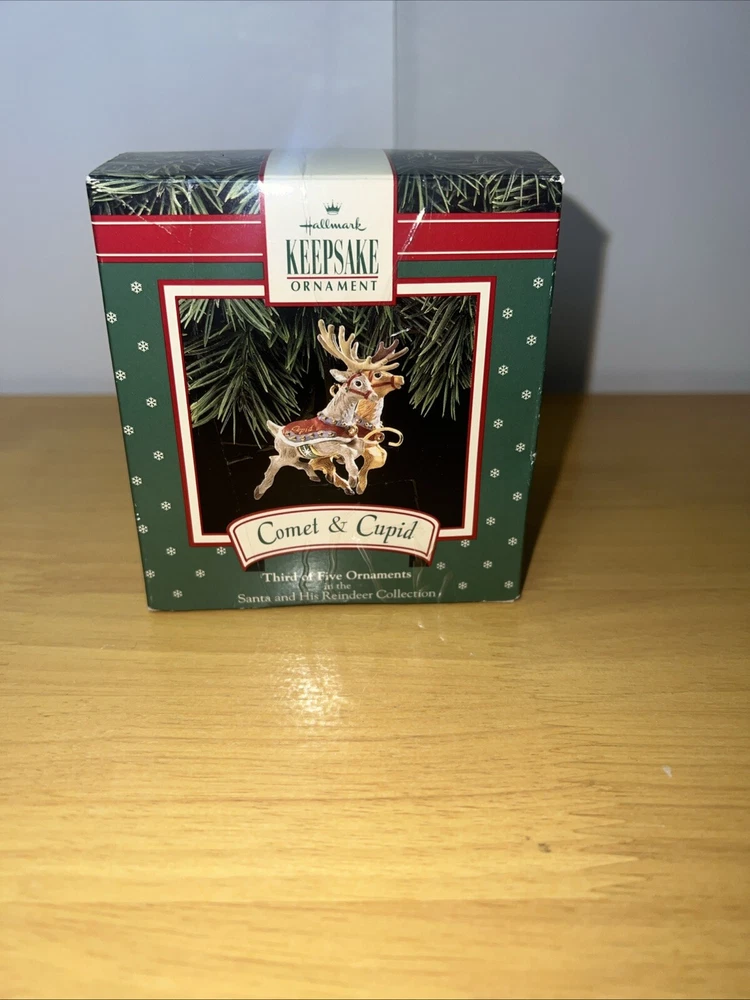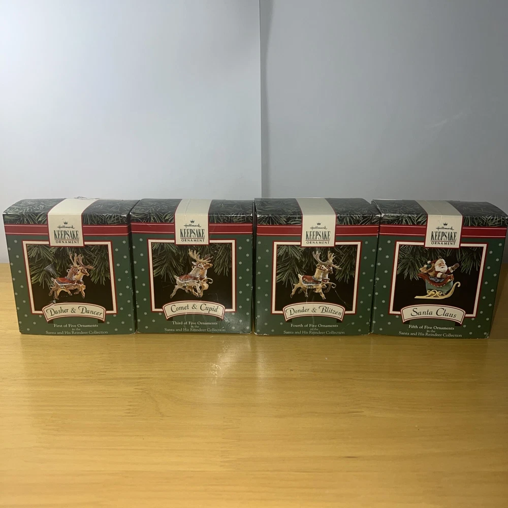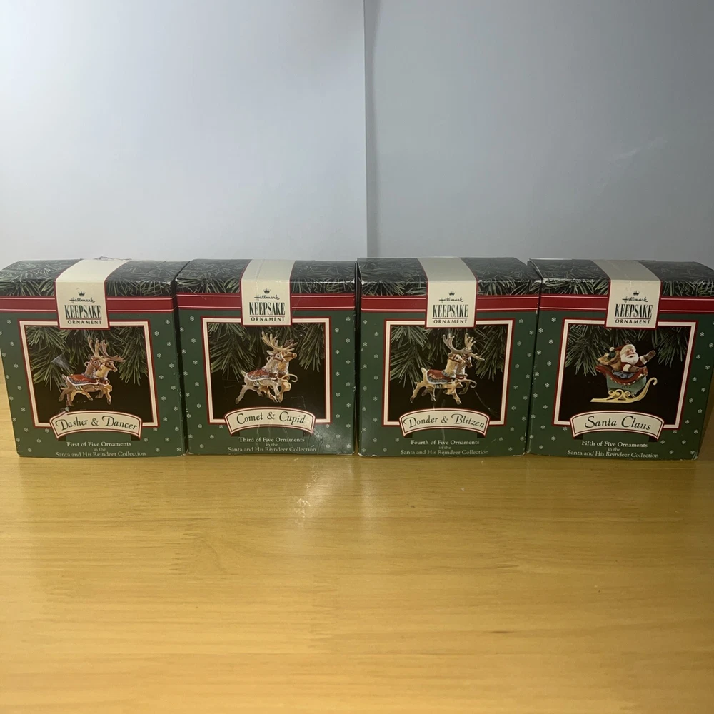 Add some festive charm to your holiday decorations with this 1992 Hallmark Santa Claus & His Reindeer ornament set. Crafted with care, this set includes six of eight reindeer ornaments, each shaped as Santa's trusty helper. The intricate details and vibrant colors make these ornaments a delightful addition to any collection. Whether you're a seasoned collector or just starting out, these ornaments are sure to bring joy to your home. Perfect for displaying on your tree, mantelpiece, or anywhere else you want to show off your holiday spirit. Don't miss out on this opportunity to add a touch of whimsy to your holiday decor.