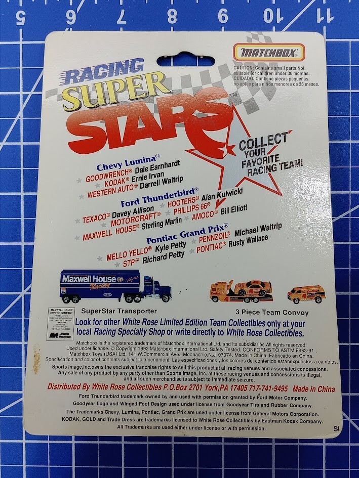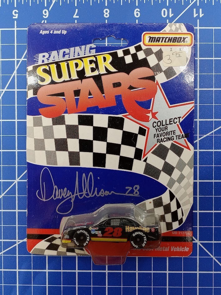 1992 Vintage Matchbox Davey Allison Texaco NASCAR Racing Superstars 1/64 SKU#102811 Look closely at the pictures to see further details. PLEASE see photos for detailed condition!! PLEASE LOOK AT THE PHOTOS CAREFULLY BEFORE PURCHASING!! If you are purchasing more than one item from us and would like combined shipping, PLEASE request an adjusted invoice from us while still in the cart and BEFORE paying. eBay does not usually calculate combined shipping accurately and you might get overcharged. Please be aware that when we photograph items, we use lighting that will show the details well. Although we try to present the product as accurately as possible, the lighting may affect the overall look of the item by appearing lighter/darker or possibly a different hue than the actual item. Depending on the type of lighting you have in your home, there may be some differences between the photos and the actual item. If this is a concern of yours, please feel free to request additional photos made in natural lighting or ask for a more detailed description of the item PRIOR TO PURCHASE! PLEASE NOTE: We greatly appreciate your interest in our item for sale. We look forward to a pleasant, quick and satisfying transaction for everybody, so please note the following information before bidding. Thank you! ITEM DESCRIPTIONS: * We will try to describe items well and provide plenty of photos. Please review these carefully before bidding or purchasing. * Only the items pictured and described are what you will receive when purchased. * We will occasionally offer an item clearly marked "AS-IS". This means that we are not sure if it works because we are unable to test it for whatever reason. We will offer these at a discounted price then a similar "working" item. It is possible that these items will work fine, but it also is possible that these items are more useful for their parts. Please only bid on or purchase these items if you are well aware of this, as we will only provide refunds of actual item price (no shipping cost refunds) for these items. * If you have any questions that aren't addressed by the descriptions or photos, please feel free to ask before you bid. * There may be bends, dents or parts of the blister that have minor issues due to long term storage Or plastic that is failing apart, paint wear, marks from items own packaging. Such things will be pointed out under the description, please look closely at the pictures for further details. PLEASE LOOK AT THE PHOTOS CAREFULLY BEFORE PURCHASING!!