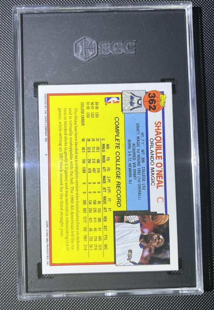 1992 Topps Shaquille O’Neil Rookie Card Gem Mint ! Looks More Like Bgs 9.5. Condition is Graded. Shipped with Canada Post Regular Parcel.