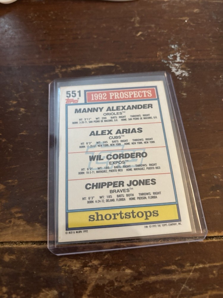 1992 Topps Top Prospects #551 Chipper Jones Wil Cordero Alex Arias Rookie Card