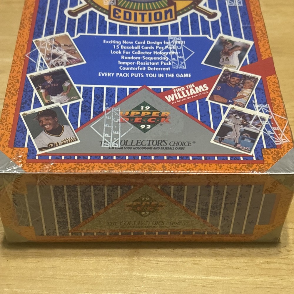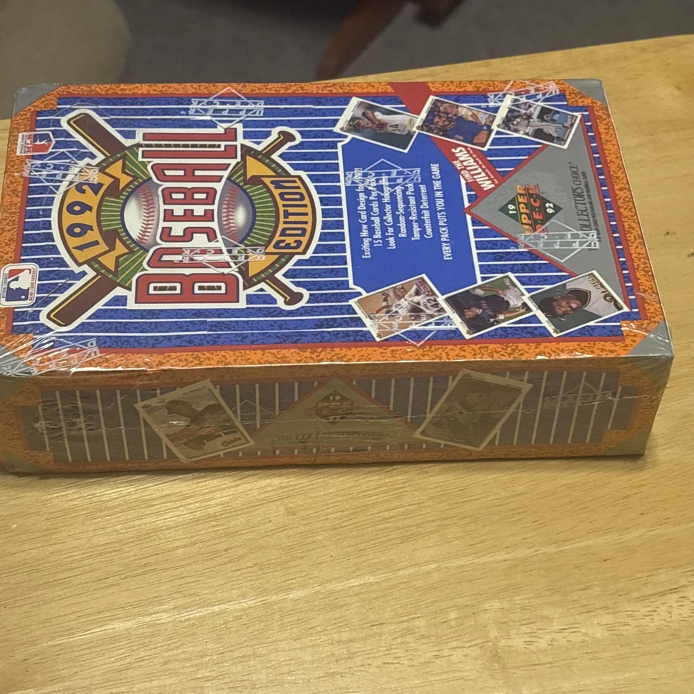 The 1992 Upper Deck Baseball Cards Factory Sealed Wax Box contains a collection of vintage baseball trading cards featuring iconic players like Ted Williams from the New York Yankees. This box is manufactured by Upper Deck and authenticated by the company, making it a valuable addition to any sports card collector's stash. Each box contains standard-sized cards made of card stock and is sealed from the original manufacturing process, ensuring the authenticity and rarity of the cards within. Perfect for fans of MLB and baseball memorabilia, this product encapsulates the nostalgia and excitement of the 1992 Major League Baseball season.