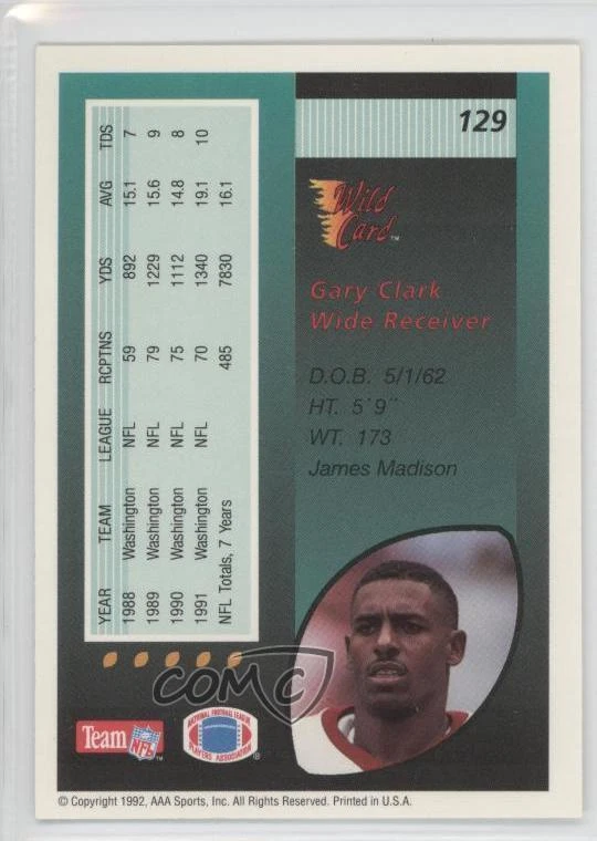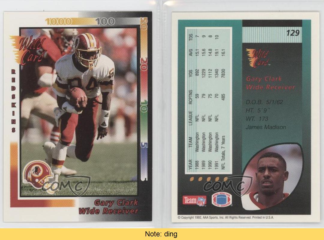 1992 Wild Card - [Base] #129 Gary Clark - Football Card - Featuring the Washington Redskins - Featuring Gary Clark Search for more: 1992 Wild Card Search for more: 1992 Wild Card - [Base] View all of our Listings Auctions Buy It Now About Us Located in the beautiful Pacific Northwest, COMC (Check Out My Cards) is the world's largest consignment service for trading card singles. More than 10,000 people have used our consignment service to list over 50 million trading cards. Find out how we can help you consign your items on eBay by contacting us through eBay messaging. COMC -- "The Safe & Easy Way to Buy & Sell" Representative Image - Select Specific Item above to see image of actual item Representative Image - Select Specific Item above to see image of actual item Raw Condition for Modern Cards Unless otherwise noted, raw modern cards are listed in Near Mint-Mint condition or better. A NM-MT card appears to be Mint at first glance, but upon closer inspection, may exhibit some of the following: minor print defects (e.g. roller marks, print line, dimple), minor scratches, slight edge wear, and slight corner wear. Centering is clearly visible in the images provided and does not factor into our condition assessment. Raw Condition for Vintage Cards Unless otherwise noted, raw vintage cards are listed in Excellent condition or better. An EX card may exhibit some of the following: minor rounding of corners, surface wear, print defects, light scratches, and slight edge wear/chipping. Centering is clearly visible in the images provided and does not factor into our condition assessment. Domestic Shipping Combined shipping for multiple items is available. To receive combined shipping, please ensure all desired items are in your eBay shopping cart before proceeding to checkout. eBay limits orders to 40 items per order. We automatically combine multiple orders placed on the same day. If you place multiple orders on the same day, please contact us to request a refund of applicable shipping costs. Signature confirmation may be required on invoices over $400. All cards are protected and shipped securely. International Shipping COMC offers eBay's International Shipping (EIS) for international orders under $2,500* (see country exceptions below). All duties and import fees are paid at checkout; in the rare event that there are additional import fees upon delivery, these are borne by the buyer. EIS packages route through a shipping hub in Erlanger, KY before shipping to their final destination. Please note that EIS does not allow for combined shipments. The shipping rates are determined by eBay and cannot be adjusted. *Maximum sale price exceptions: Colombia, Kuwait ($2,000); Taiwan ($1,539); Chile, Costa Rica, Guatemala, Honduras, Trinidad and Tobago ($1,000); Antigua and Barbuda, Aruba, Belize, Dominica, Grenada, Philippines, Saint Kitts and Nevis, Saint Lucia, Montserrat, Turks and Caicos Islands ($500); Dominican Republic, El Salvador ($200). Please request a shipping quote through eBay messaging for orders that exceed the maximum sale price supported by eBay's International Shipping. You will be responsible for all duties and import fees for international orders shipped outside the EIS. All cards are protected and shipped securely. Payment COMC does not accept offers on our cards through our eBay storefront. COMC utilizes eBay’s managed payments system. If you are experiencing difficulties making a payment, please contact eBay for assistance. Return Policy Returns are only accepted on the rare occasion the item is not as described. If you are making a return, please initiate the return process through eBay so a mailing label can be provided for you. Prior to listing, our expert team carefully assessed this item to represent it accurately. Please review the description and high-definition images prior to purchasing to ensure this item meets your satisfaction. We welcome you to contact us if you have further questions about this item. Trust and Integrity COMC carefully assesses each item consigned to us to prevent fraudulent items from entering the marketplace. If you believe an item offered on COMC may be fraudulent, please contact us with details so we can investigate the issue. Items we determine are outside our supported items policy may be removed. Last Modified: 1/28/2025 5:05:25 AM PDT