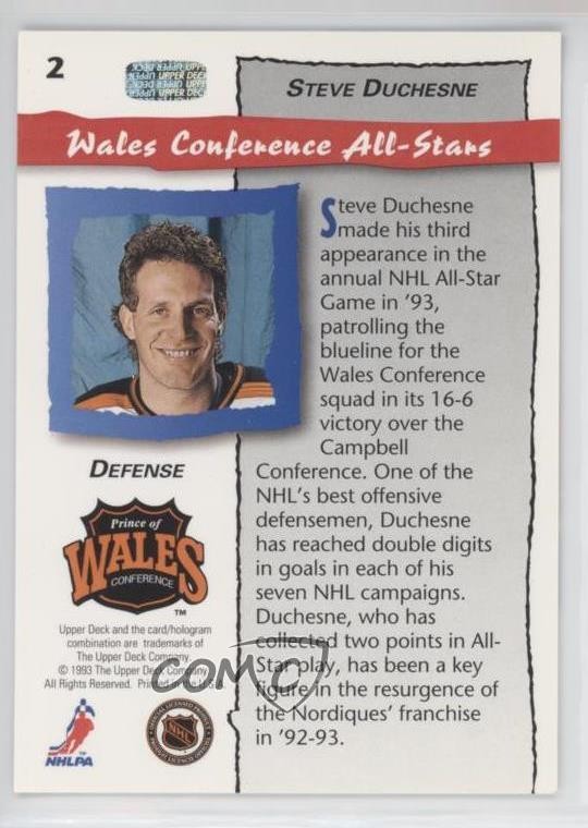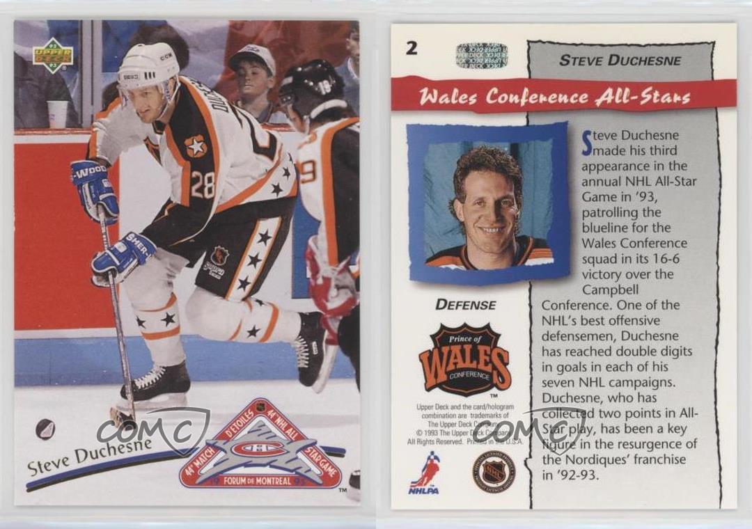 1992-93 Upper Deck - All-Stars #2 Steve Duchesne - Ice Hockey Card - Featuring the NHL All-Star Team - Featuring Steve Duchesne Search for more: 1992-93 Upper Deck Search for more: 1992-93 Upper Deck - All-Stars View all of our Listings Auctions Buy It Now About Us Located in the beautiful Pacific Northwest, COMC (Check Out My Cards) is the world's largest consignment service for trading card singles. More than 10,000 people have used our consignment service to list over 50 million trading cards. Find out how we can help you consign your items on eBay by contacting us through eBay messaging. COMC -- "The Safe & Easy Way to Buy & Sell" Representative Image - Select Specific Item above to see image of actual item Representative Image - Select Specific Item above to see image of actual item Raw Condition for Modern Cards Unless otherwise noted, raw modern cards are listed in Near Mint-Mint condition or better. A NM-MT card appears to be Mint at first glance, but upon closer inspection, may exhibit some of the following: minor print defects (e.g. roller marks, print line, dimple), minor scratches, slight edge wear, and slight corner wear. Centering is clearly visible in the images provided and does not factor into our condition assessment. Raw Condition for Vintage Cards Unless otherwise noted, raw vintage cards are listed in Excellent condition or better. An EX card may exhibit some of the following: minor rounding of corners, surface wear, print defects, light scratches, and slight edge wear/chipping. Centering is clearly visible in the images provided and does not factor into our condition assessment. Domestic Shipping Combined shipping for multiple items is available. To receive combined shipping, please ensure all desired items are in your eBay shopping cart before proceeding to checkout. eBay limits orders to 40 items per order. We automatically combine multiple orders placed on the same day. If you place multiple orders on the same day, please contact us to request a refund of applicable shipping costs. Signature confirmation may be required on invoices over $400. All cards are protected and shipped securely. International Shipping COMC offers eBay's International Shipping (EIS) for international orders under $2,500* (see country exceptions below). All duties and import fees are paid at checkout; in the rare event that there are additional import fees upon delivery, these are borne by the buyer. EIS packages route through a shipping hub in Erlanger, KY before shipping to their final destination. Please note that EIS does not allow for combined shipments. The shipping rates are determined by eBay and cannot be adjusted. *Maximum sale price exceptions: Colombia, Kuwait ($2,000); Taiwan ($1,539); Chile, Costa Rica, Guatemala, Honduras, Trinidad and Tobago ($1,000); Antigua and Barbuda, Aruba, Belize, Dominica, Grenada, Philippines, Saint Kitts and Nevis, Saint Lucia, Montserrat, Turks and Caicos Islands ($500); Dominican Republic, El Salvador ($200). Please request a shipping quote through eBay messaging for orders that exceed the maximum sale price supported by eBay's International Shipping. You will be responsible for all duties and import fees for international orders shipped outside the EIS. All cards are protected and shipped securely. Payment COMC does not accept offers on our cards through our eBay storefront. COMC utilizes eBay’s managed payments system. If you are experiencing difficulties making a payment, please contact eBay for assistance. Return Policy Returns are only accepted on the rare occasion the item is not as described. If you are making a return, please initiate the return process through eBay so a mailing label can be provided for you. Prior to listing, our expert team carefully assessed this item to represent it accurately. Please review the description and high-definition images prior to purchasing to ensure this item meets your satisfaction. We welcome you to contact us if you have further questions about this item. Trust and Integrity COMC carefully assesses each item consigned to us to prevent fraudulent items from entering the marketplace. If you believe an item offered on COMC may be fraudulent, please contact us with details so we can investigate the issue. Items we determine are outside our supported items policy may be removed. Last Modified: 6/7/2025 7:14:09 AM PDT
