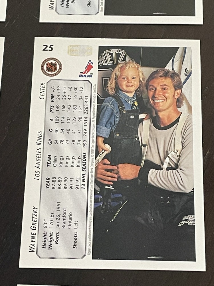 Lot of 6 1992-93 Upper Deck #25 Wayne Gretzky Los Angeles Kings trading card. This sports trading card features the legendary player Wayne Gretzky during his time with the Los Angeles Kings in the National Hockey League (NHL). Manufactured by Upper Deck, this collectible item is a must-have for any ice hockey fan or trading card enthusiast. Perfect for adding to your sports memorabilia collection or for displaying proudly as a piece of hockey history.