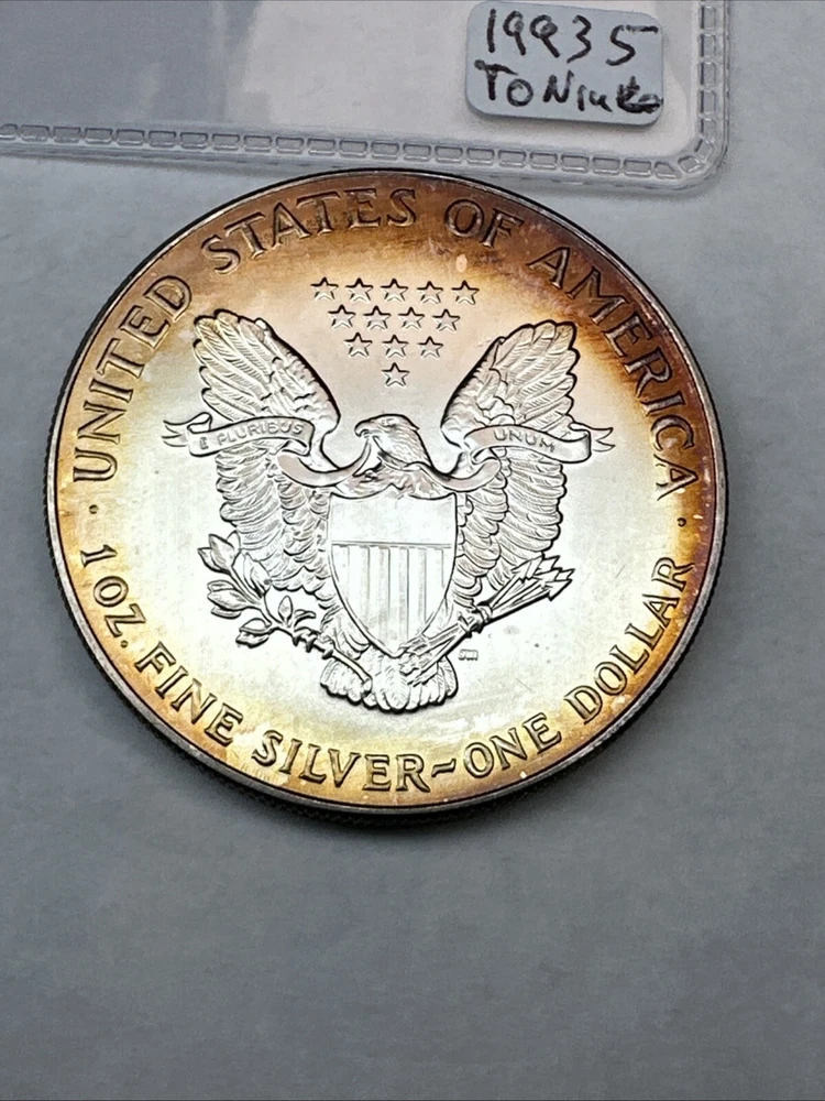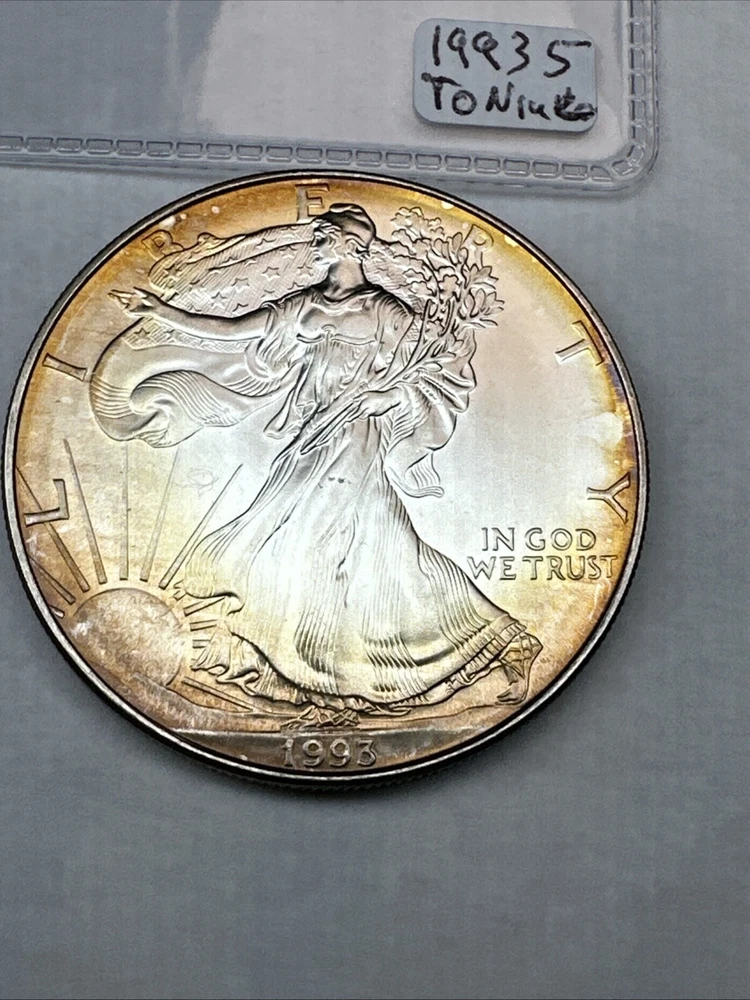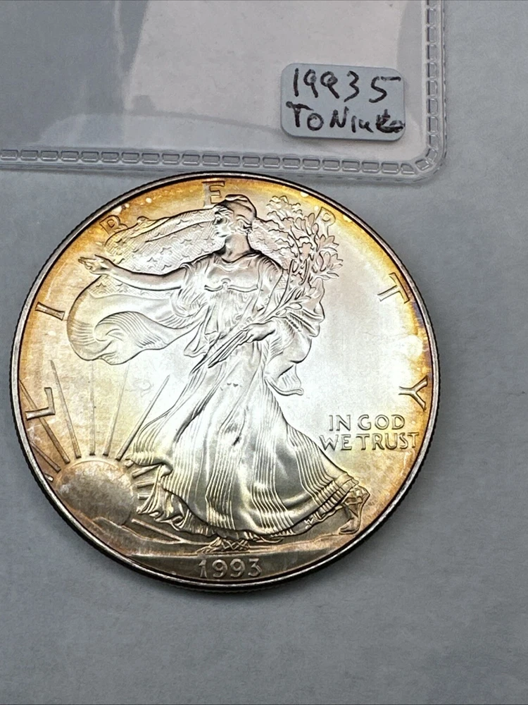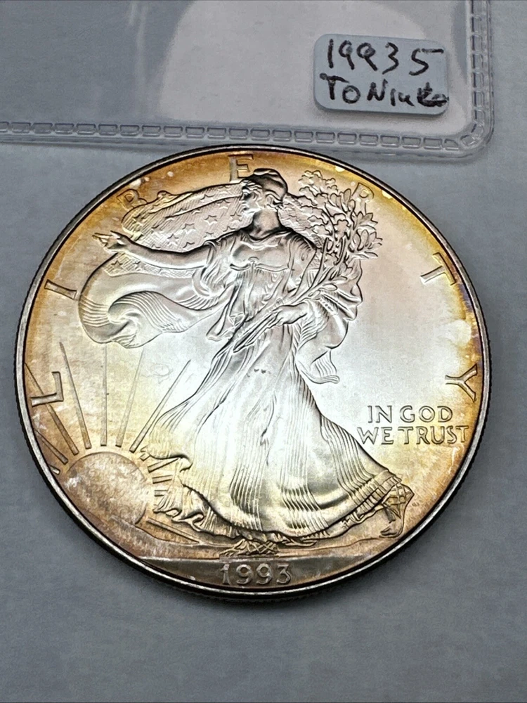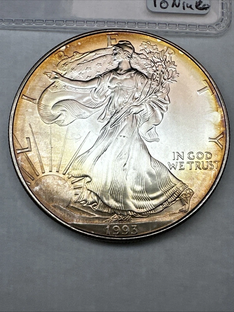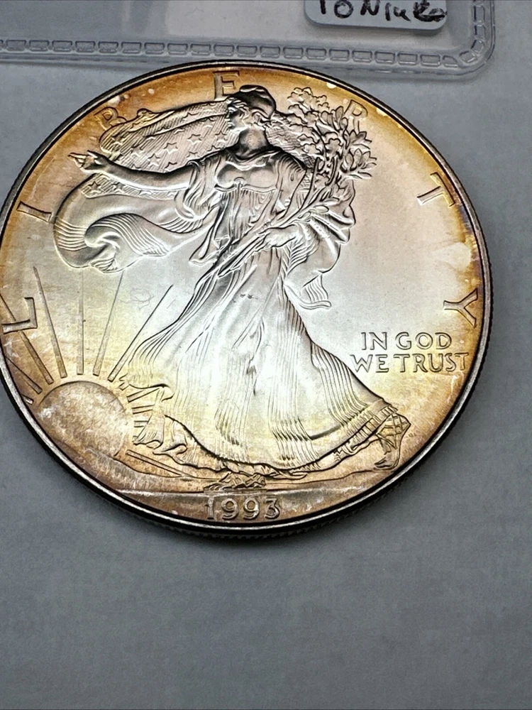 1993 American Silver Eagle! $1 1oz 0.999 Fine Silver.Cool Toning! Uncirculated
