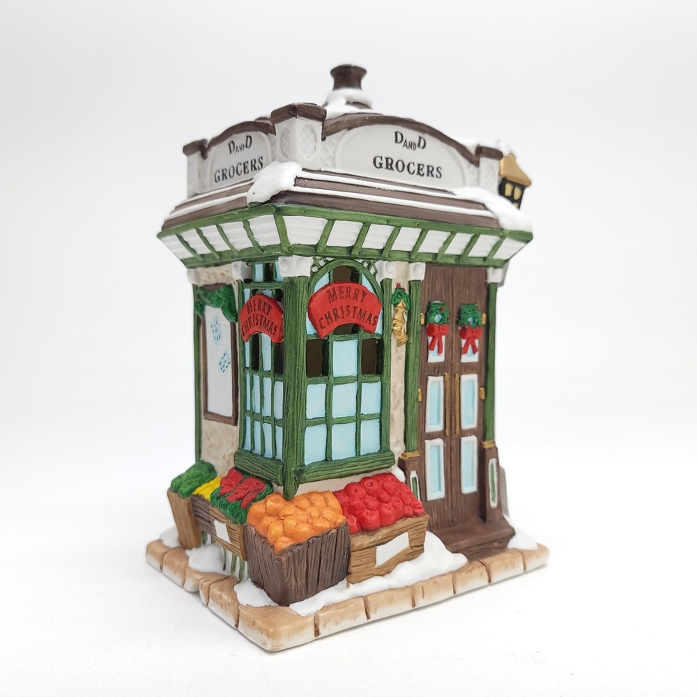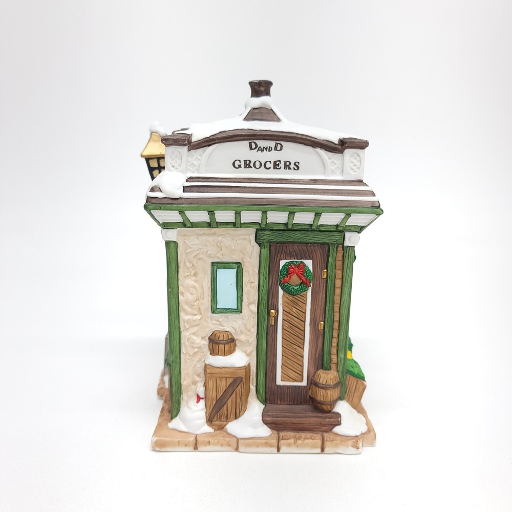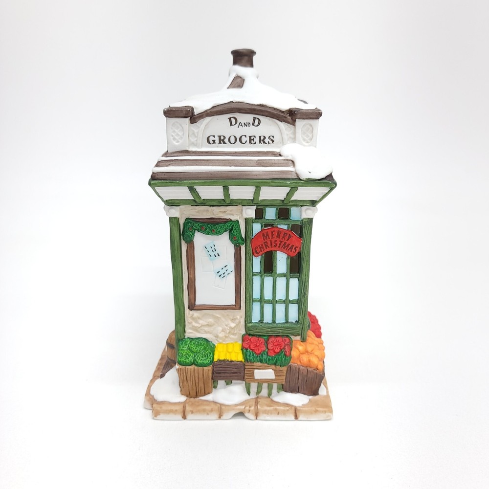1993 Mercuries USA Christmas Village collectible. D and D Grocers is a delightful representation of a bygone era, complete with Victorian styling and intricate porcelain detailing. Measures 7.5 in. Tall x 5 in. X 4.125 in. All items are packaged with care and shipped within one business day or sooner. Thanks for stopping by!