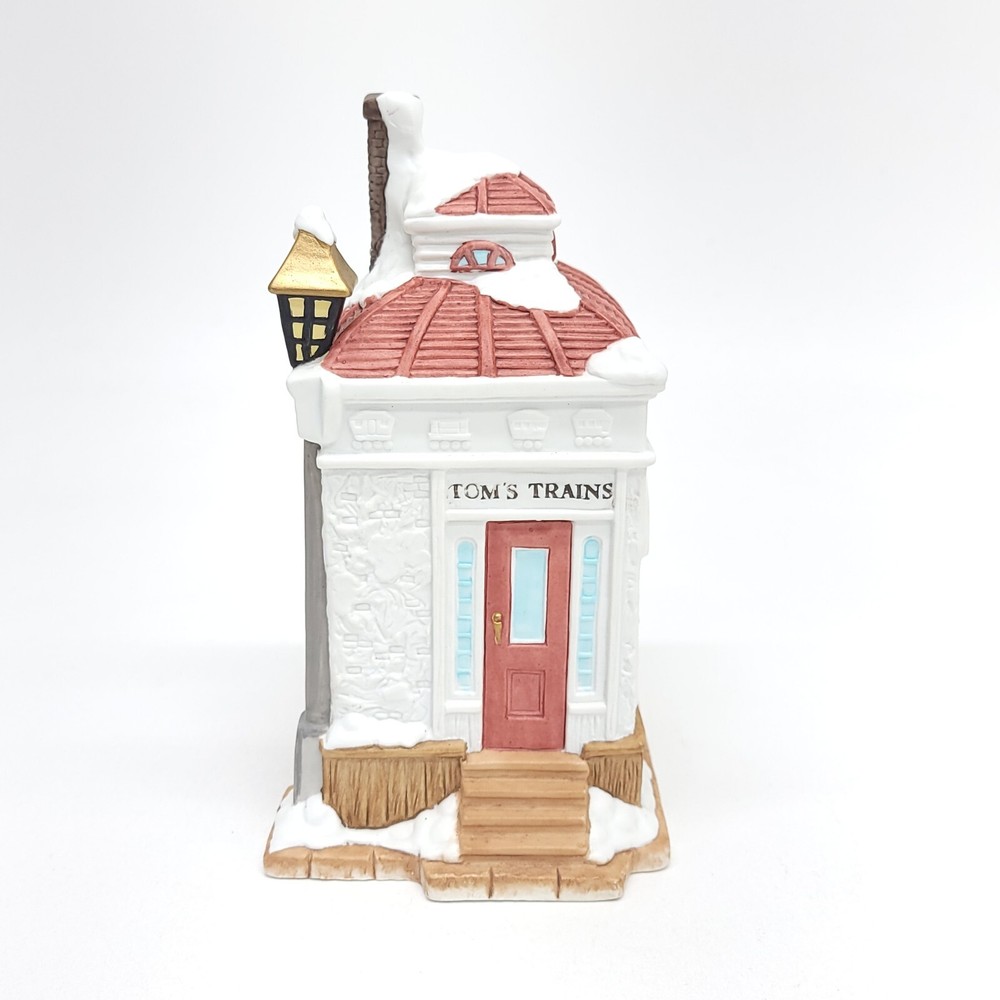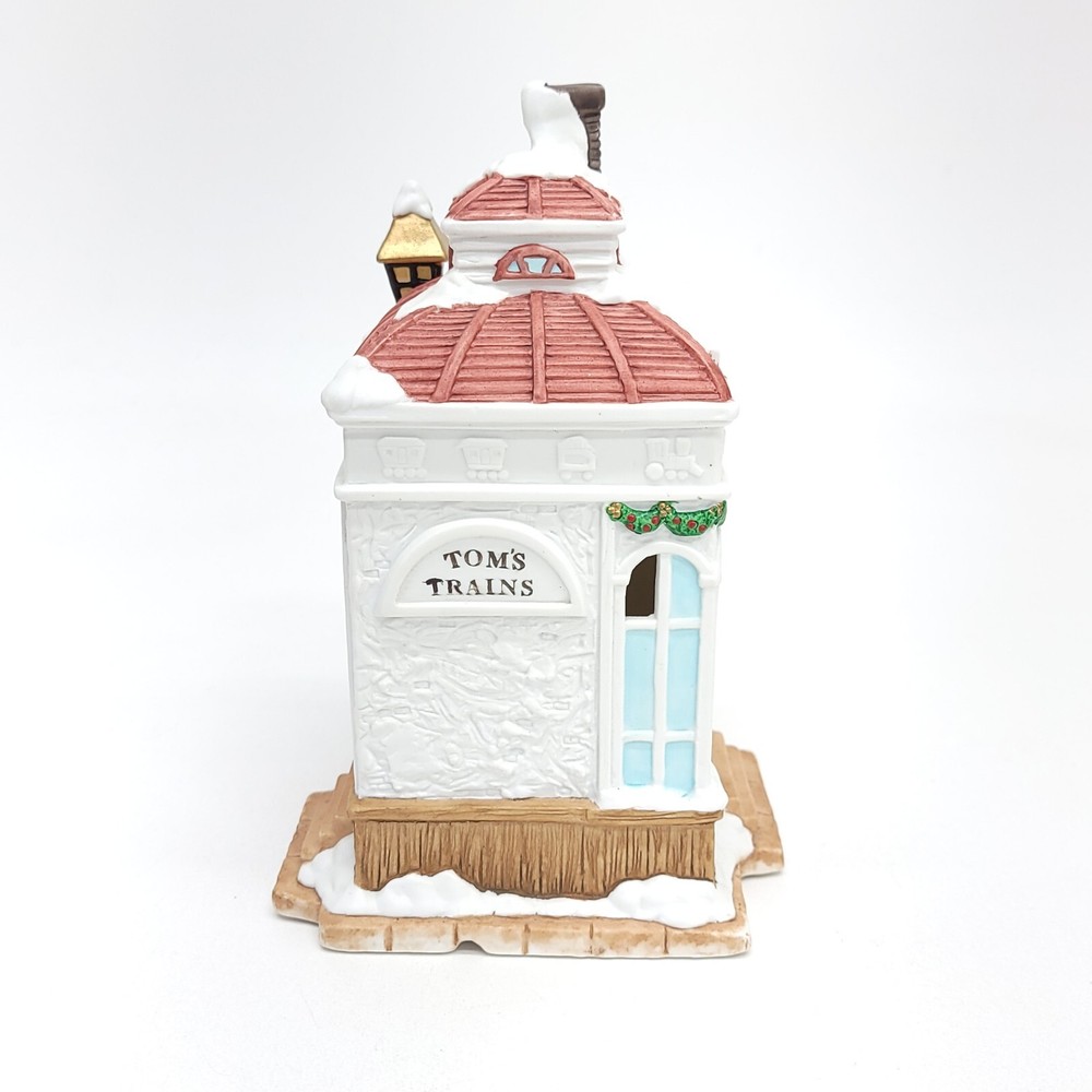 1993 Mercuries USA Christmas Village collectible. Tom's Trains Shop is a delightful representation of a bygone era, complete with Victorian styling and intricate porcelain detailing. Measures 8 in. Tall x 5.5 in. X 4.25 in. All items are packaged with care and shipped within one business day or sooner. Thanks for stopping by!