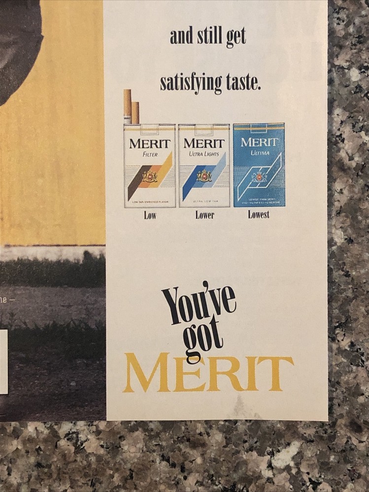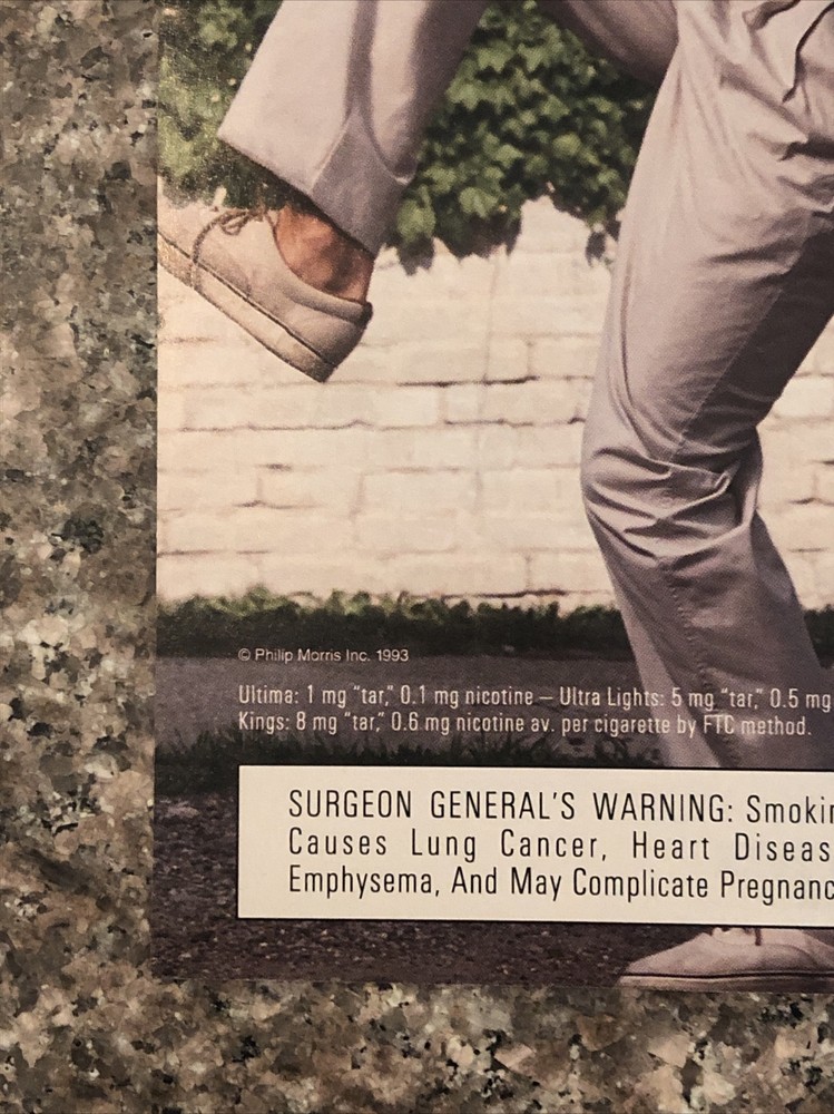 This vintage 1993 Merit Cigarettes print ad features a goofball guy fist pumping the air with the words "You Can Do It!" in bold letters. The ad is a magazine print ad that is perfect for collectors of advertising memorabilia. The ad is in great shape and has been well-preserved over the years. It is a great addition to any collection of vintage advertising items. Get your hands on this unique piece of history today! Original approximate 8”x11” vintage magazine print ad.