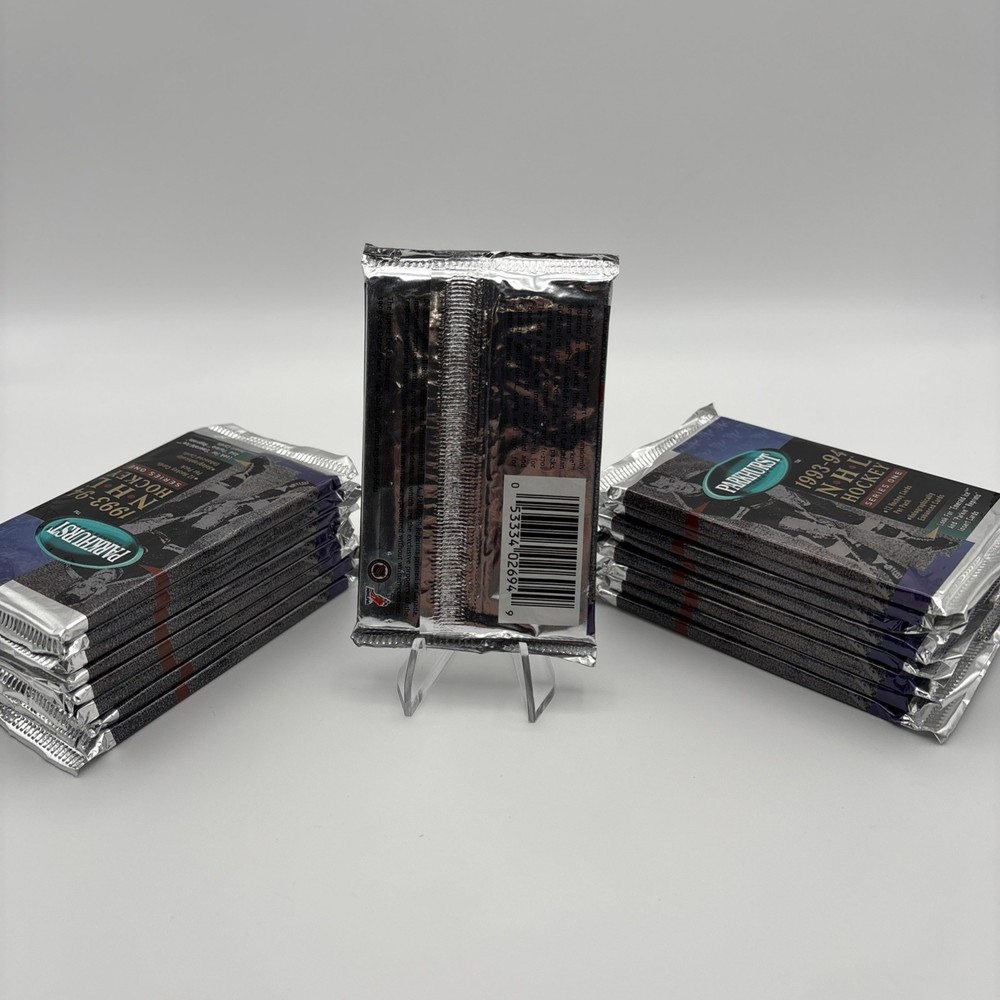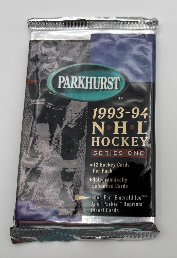 This lot of 17 1993 Parkhurst Series 1 NHL Hockey Cards includes a total of 102 cards, with each pack containing 12 cards. These standard-sized trading cards feature players from the National Hockey League (NHL) and are part of the 1993-94 Parkhurst set. Manufactured by Parkhurst, these cards are not autographed and are factory sealed, ensuring the authenticity and quality of the collection. Ideal for ice hockey fans and collectors, this lot offers a glimpse into the excitement of the 1993 NHL season.