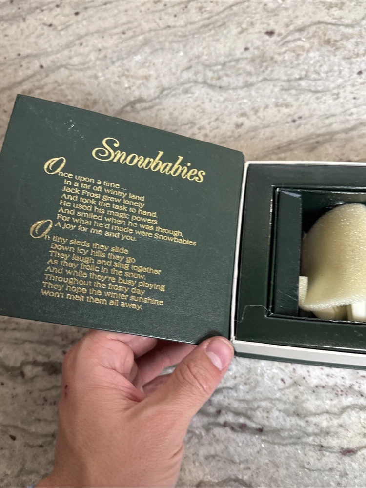 This Snowbabies figurine is a charming addition to any collection. Made from ceramic and porcelain, it features a cute angel design with a white color finish. The figurine stands at 2.75 inches tall and is part of the Snowbabies collection from 1993. Perfect for collectors or as a holiday decoration, this Snowbabies figurine is sure to bring joy to any setting. The event piece #6838-1 adds an extra touch of whimsy to the design. Don't miss out on the opportunity to own this delightful piece of Snowbabies history.