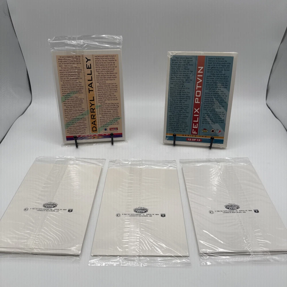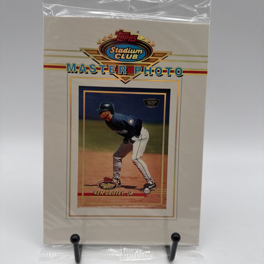 The 1993 Topps Stadium Club Master 5x7 Photo Packs (5) feature sports trading cards of baseball player Ken Griffey Jr. The packs come in a set of 5 and include trading cards from the Major League (MLB) season of 1993. Manufactured by Topps Stadium Club in the United States, these packs offer a selection of sports trading cards from baseball, football, and hockey, all in the 5 x 7 card size. Each pack is a part of the Master Photo set configuration, making them a sought-after collectible for sports fans and trading card enthusiasts.