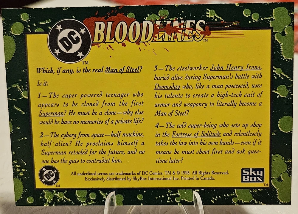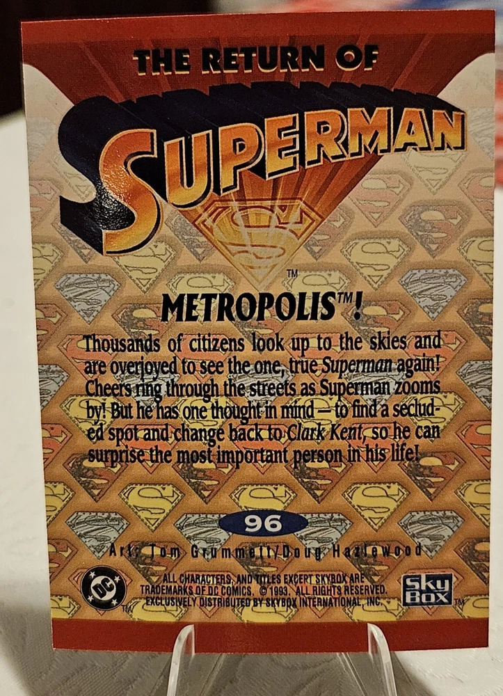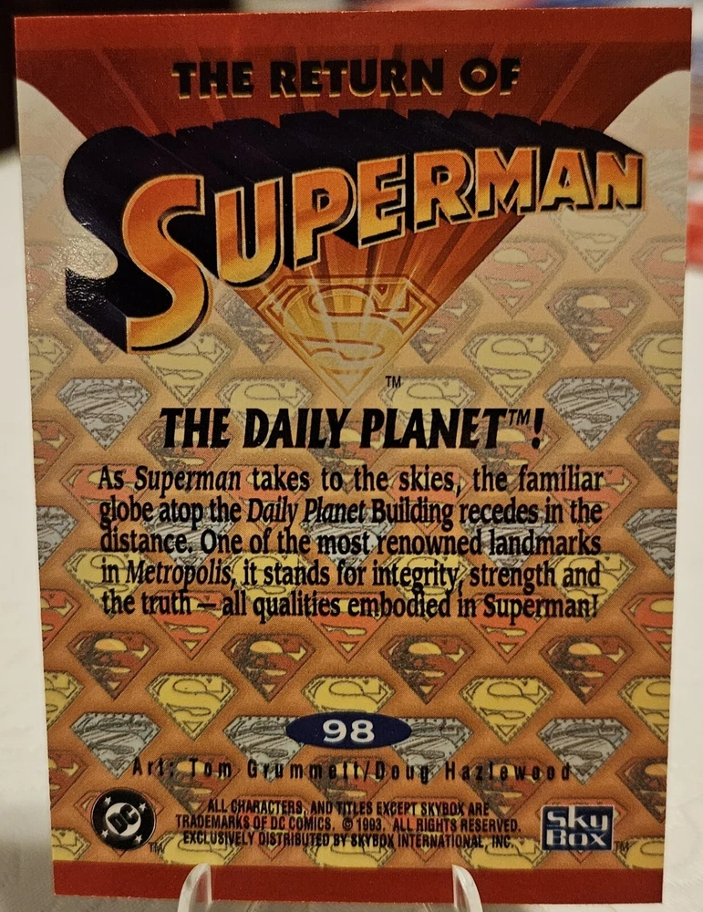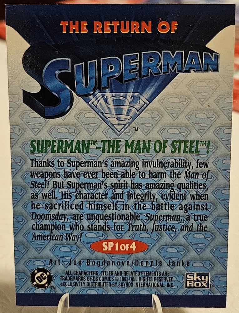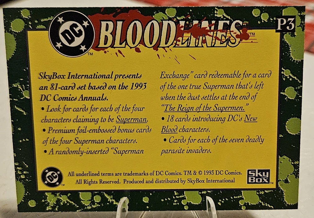 Lot includes: -Complete set 1994 Skybox The Return of Superman #1-100 -The Return of Superman insert SP1 -2 Promo cards for DC Bloodlines -DC Firepower embossed Promo card. -DC power chrome legend 95 Promo card. -Plus Promo card for Skybox Batman master series.