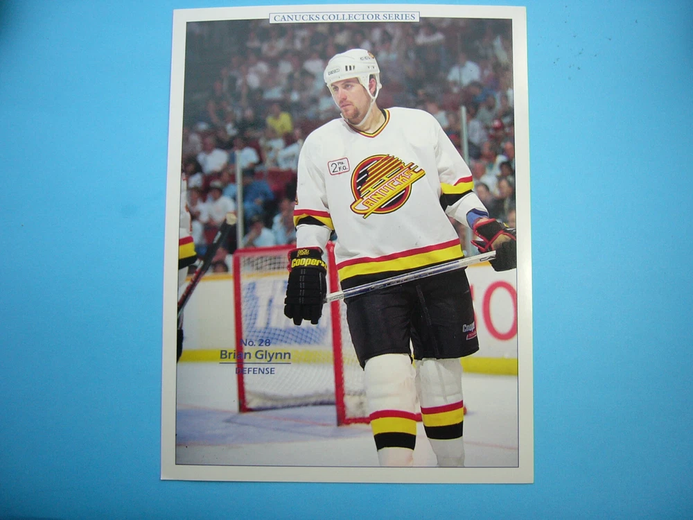 YOU ARE BIDDING ON A 1993/94 VANCOUVER CANUCKS "COLLECTOR SERIES" TEAM ISSUED PHOTO BRYAN GLYNN, VANCOUVER CANUCKS. PLAYER NUMBER 28. TOUGH TO FIND PHOTO THAT WAS DISTRIBUTED IN THE CANUCKS PROGRAMS FROM THAT YEAR. GREAT CONDITION. SEE SCANS FOR FURTHER CONDITION. GREAT COLOUR & GLOSS--A VERY SHARP, CLEAN & ATTRACTIVE PHOTO FROM THIS UNIQUE & VALUABLE VANCOUVER CANUCKS HOCKEY SET!!! THANKS FOR LOOKING AND GOOD LUCK!!! ------------------------------------------------------------------------------------------------------------------------------------------------------- SHIPPING WITHIN CANADA IS $3.75, TO THE UNITED STATES $4.25, AND INTERNATIONALLY $8.00 (EVERYWHERE ELSE). ITEM WILL BE CAREFULLY PACKAGED SO AS NOT TO GET DAMAGED DURING SHIPPING. IF YOU WOULD LIKE INSURANCE OR ANOTHER SHIPPING METHOD, THAT IS FINE SO LONG AS YOU COVER ANY OVERAGE IN COST. I DO COMBINE SHIPPING ON MULTIPLE PURCHASES--ONLY 20 CENTS MORE PER ADDITIONAL SINGLE PHOTO OR CARD. TAKE A LOOK AT MY OTHER AUCTIONS AND SAVE ON SHIPPING!!!