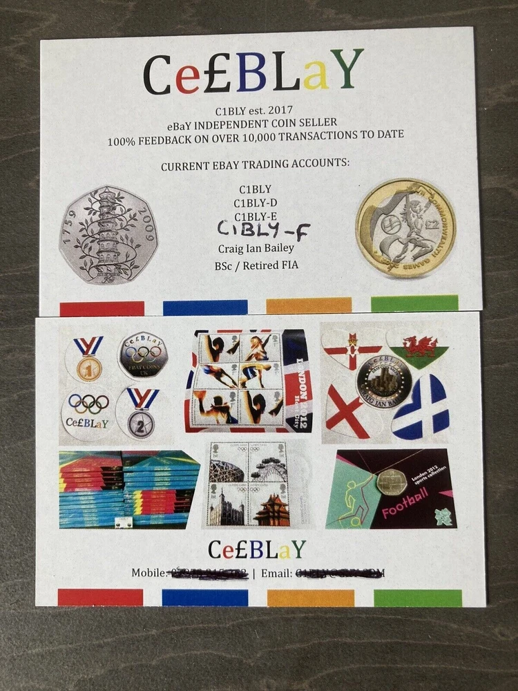 FREE POSTAGE ROYAL MAIL 2ND CLASS. I WILL MESSAGE YOU TO LET YOU KNOW WHEN IT IS BEING POSTED AND WILL OBTAIN PROOF OF POSTAGE. THE COIN WILL BE PLACED IN A PLASTIC COIN WALLET SEALED INSIDE A SMALL ENVELOPE & POSTED IN A PLEASE DO NOT BEND CARDBOARD BACKED ENVELOPE SO NO CHANCE OF ESCAPING IN TRANSIT. NOT THE BEST CONDITION OF COIN I LIKE TO SELL SO REASONABLE BEST OFFERS WILL BE CONSIDERED. C e £ B L a Y C1BLY est. 2017 eBaY INDEPENDENT COIN SELLER 100% FEEDBACK ON OVER 10,000* TRANSACTIONS TO DATE HMRC REGISTERED TRADER * MAIN EBAY BUSINESS ACCOUNT C1BLY-COINS