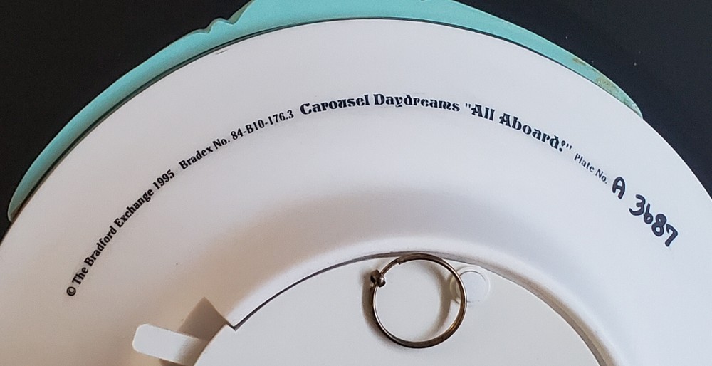 Immerse yourself in the enchanting world of horsemanship with the Bradford Exchange Carousel Daydreams “All Aboard!” Musical Wall Plate. This exquisite collector's piece, dating back to 1994, is a testament to the timeless beauty of equestrian artistry. With plate number A3687, it's a distinctive addition to any collection, designed to be a standout display that captures the essence of motion and music. Crafted by the renowned Bradford Exchange, this wall plate isn't just a visual delight; it's a functional musical treasure that brings a touch of nostalgia and grace to your home. The intricate design and attention to detail reflect the quality and artistry expected from such a prestigious brand, making it a treasure not just for collectors, but for anyone who appreciates the blend of equine elegance and melodious charm.