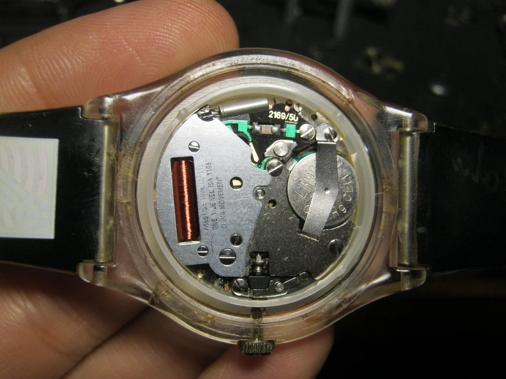 instead of a second hand there is a disc with a polarizing film, so the image on the dial periodically appears and disappears