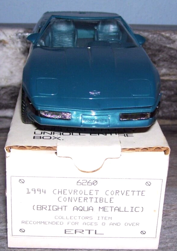 This is a 1994 Corvette Convertible in bright aqua metallic ERTL dealer promo model car in the original box. It is in Excellent Condition. Thanks for looking.