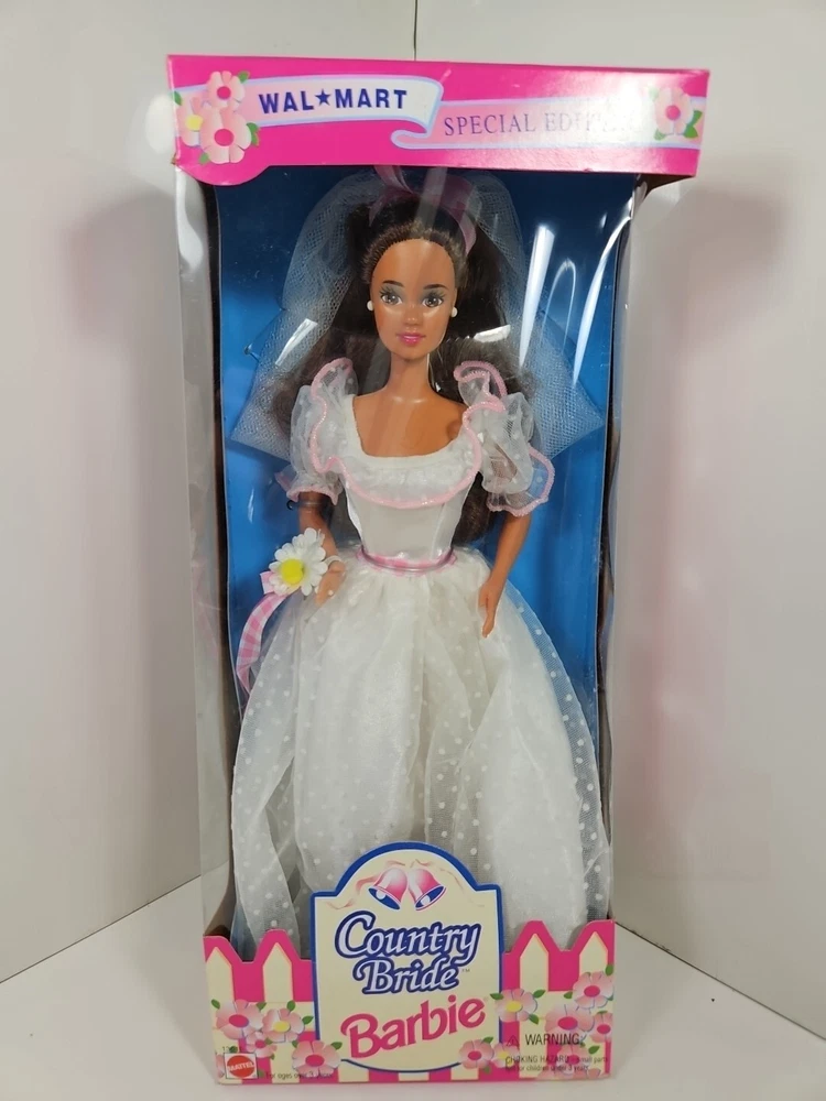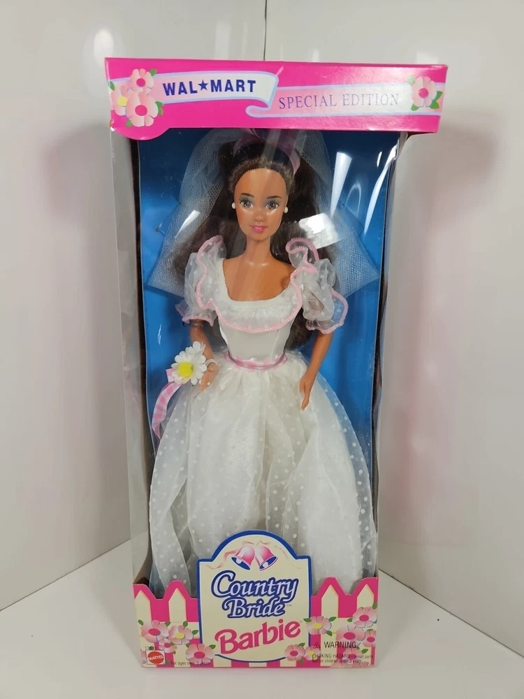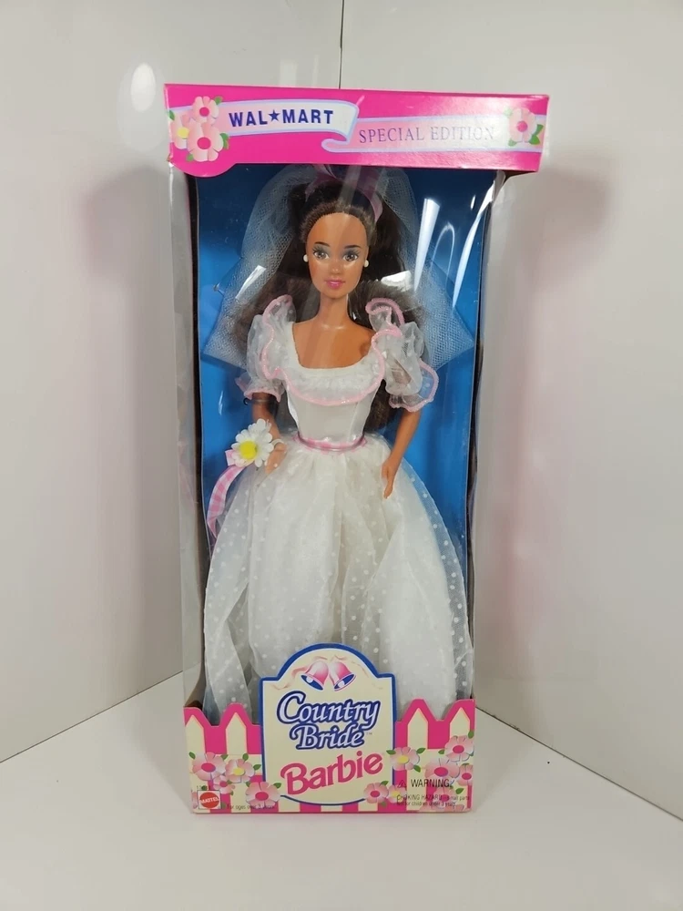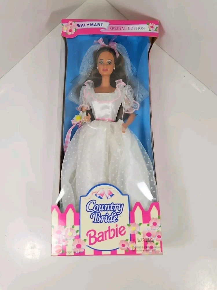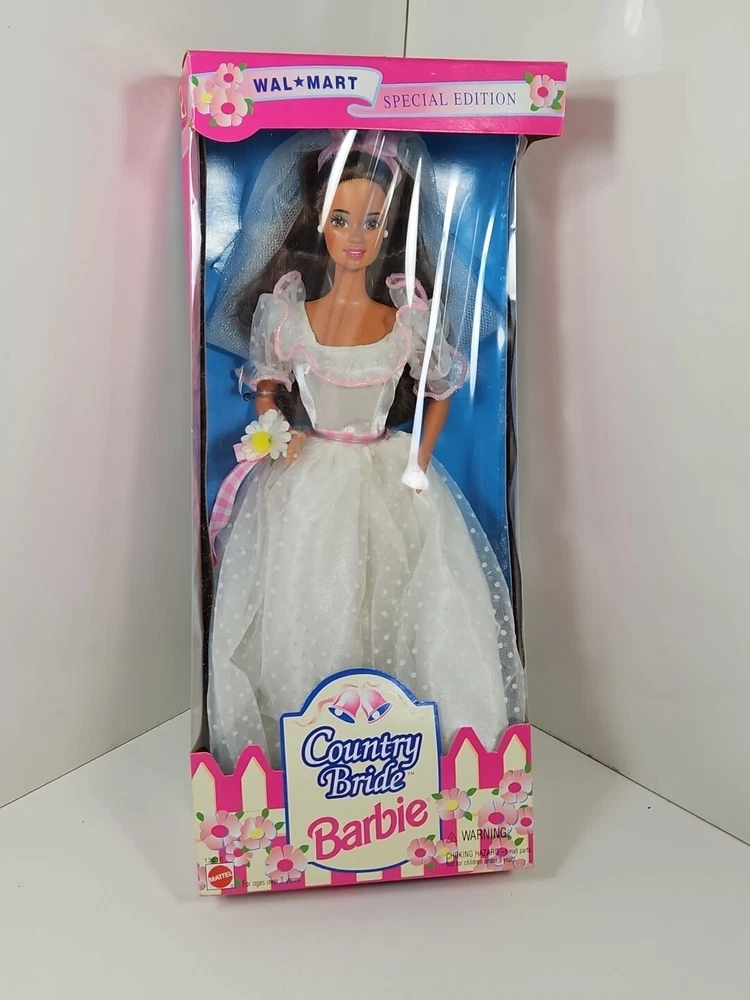 1994 Country Bride WalMart Special Edition Barbie Doll #13616 NEW NRFB by Mattel Product will be shipped timely and packaged with care. Offers are encouraged. Please feel free to reach out with questions. Please see pictures. Thank you. New old stock. Light shelf wear from age and storage. Indentation on top as seen. This is a 1994 Country Bride WalMart Special Edition Barbie Doll #13616 by Mattel. It is a Fashion Doll from the Barbie character line, featuring a Country Bride theme. This doll set includes the Barbie doll and was manufactured in 1994 as a Special Edition product under the Country Bride series by Mattel. BS1