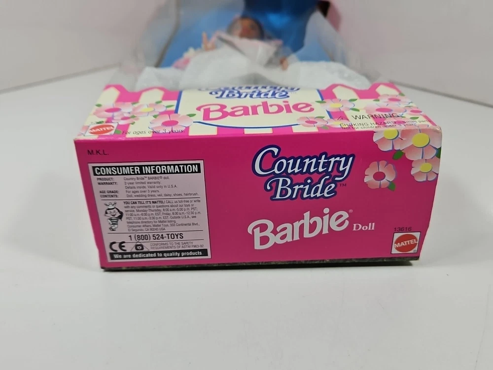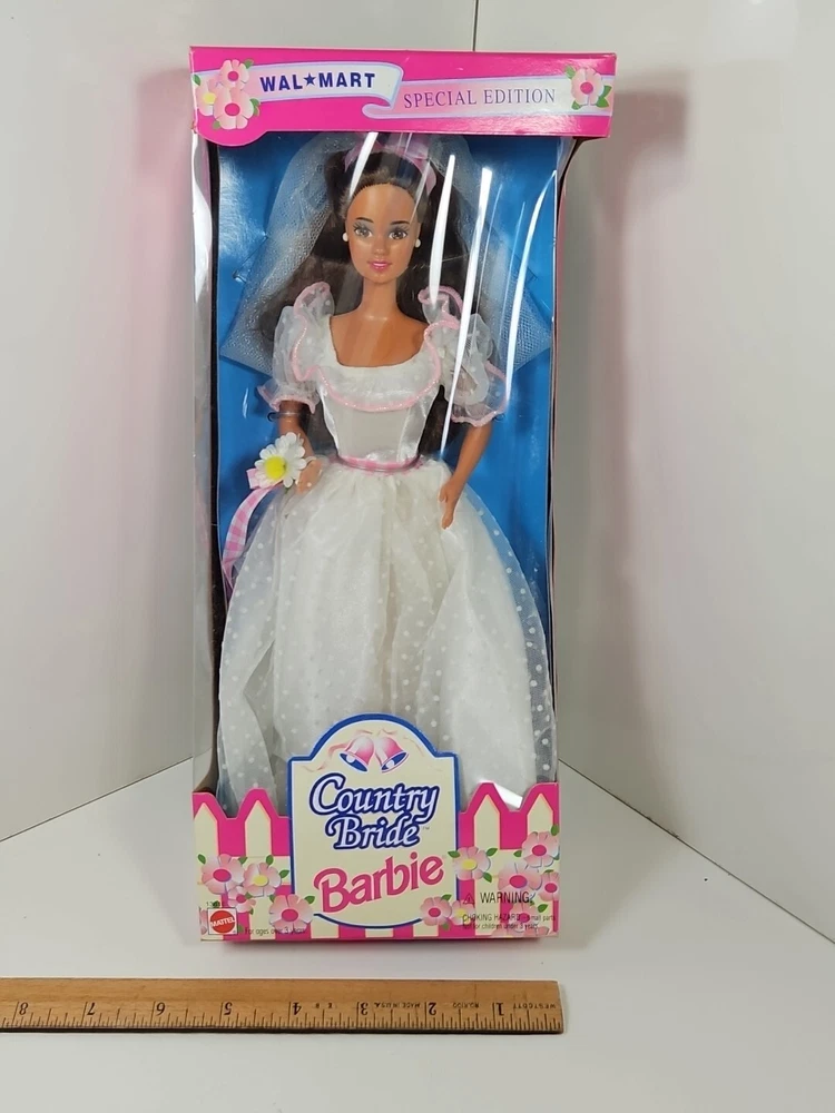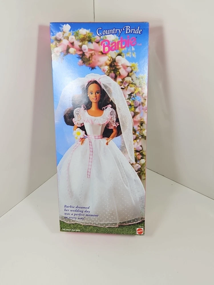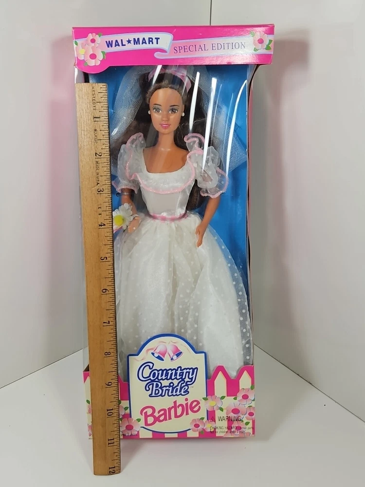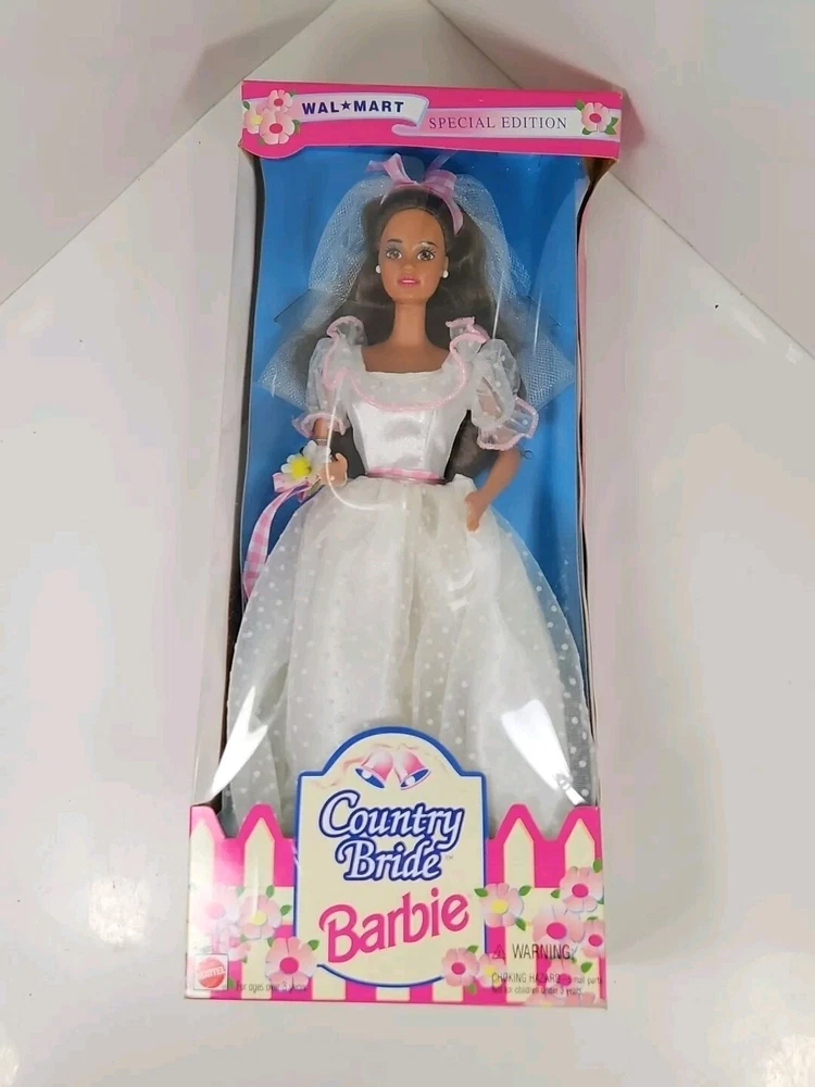 1994 Country Bride WalMart Special Edition Barbie Doll #13616 NEW NRFB by Mattel Product will be shipped timely and packaged with care. Offers are encouraged. Please feel free to reach out with questions. Please see pictures. Thank you. New old stock. Light shelf wear from age and storage. Indentation on top as seen. This is a 1994 Country Bride WalMart Special Edition Barbie Doll #13616 by Mattel. It is a Fashion Doll from the Barbie character line, featuring a Country Bride theme. This doll set includes the Barbie doll and was manufactured in 1994 as a Special Edition product under the Country Bride series by Mattel. BS1