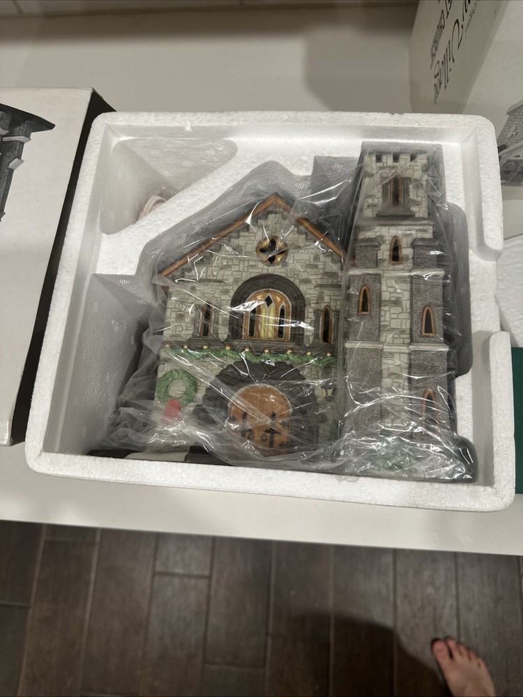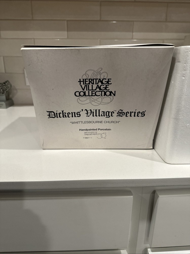 Add a charming touch to your holiday decor with the Department 56 Dickens Village Series 5821-1 Whittlesbourne Church. This exquisite piece, part of the beloved Dickens Village collection, captures the essence of Christmas nostalgia with its detailed ceramic and porcelain craftsmanship. The set includes the iconic church building, complete with the original packaging to ensure it remains a pristine part of your collection. With its origins in the 1990-1999 period, this boxed village piece is not only a decorative item but also a snapshot of holiday traditions from the past. Celebrate the festive spirit and the rich history of Christmas villages with this classic addition to your holiday setup, bringing warmth and a touch of Victorian elegance to your home.