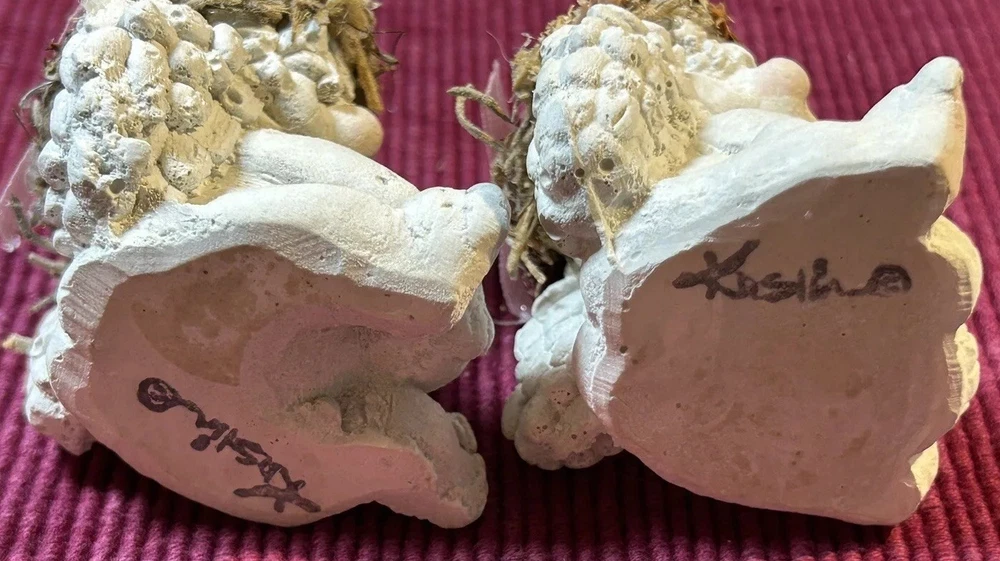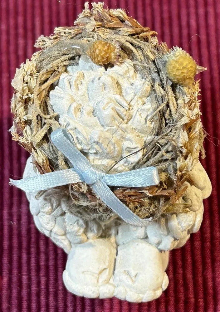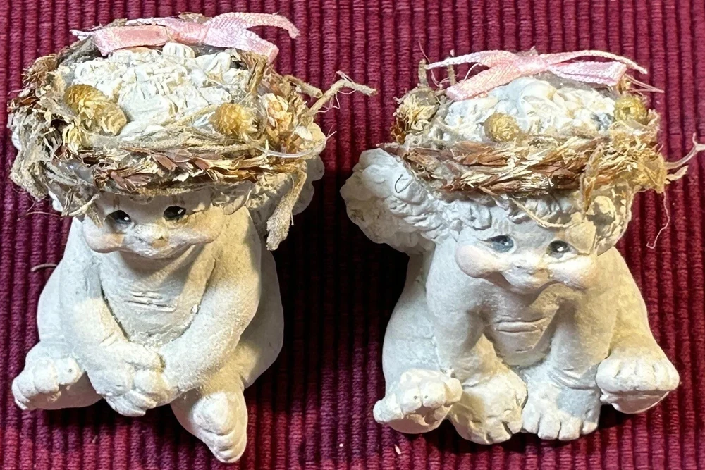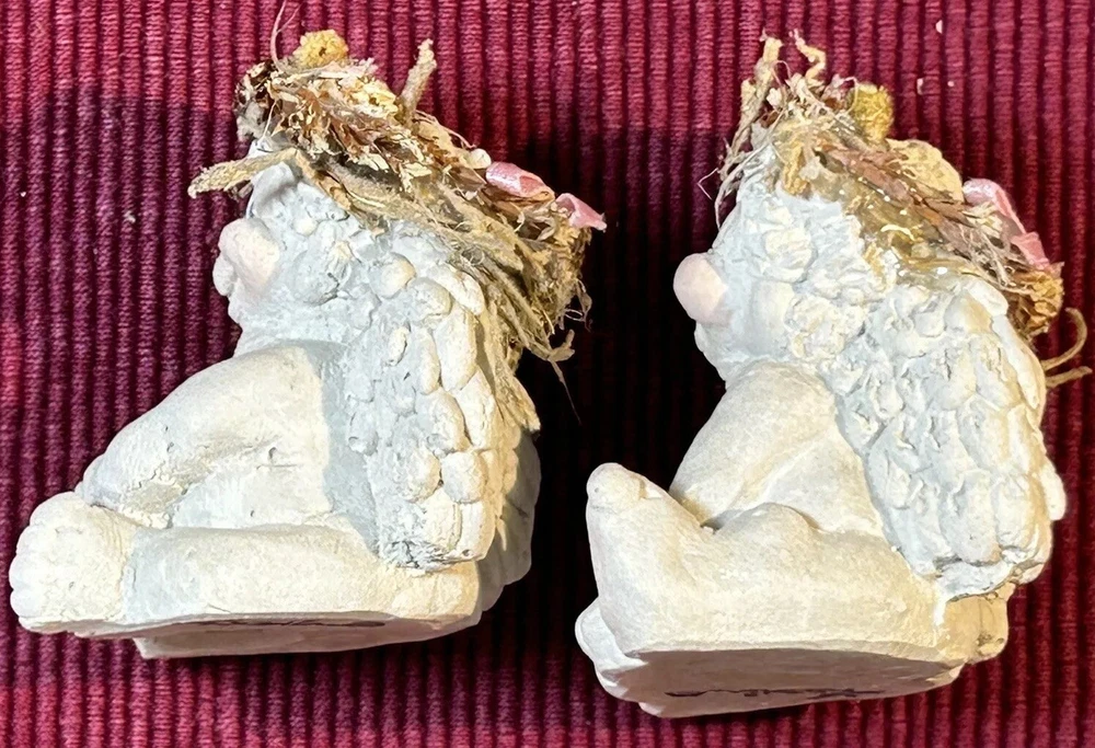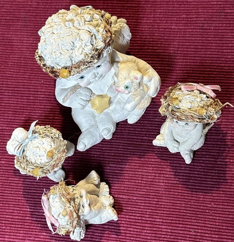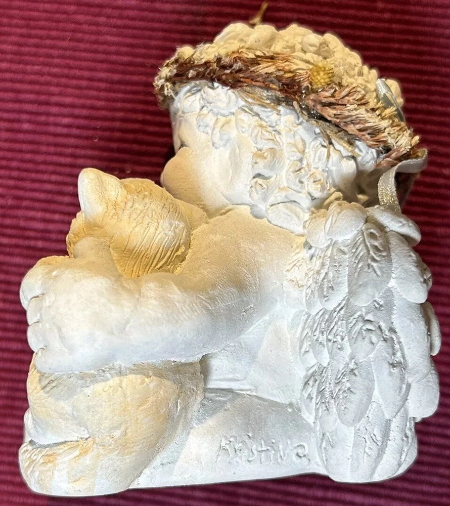Dreamsicles “Love My Kitty” and 3 Little Sitting Cherubs Cast Art Figurines by Kristin. This is a bundle of 4 angel Dreamsicles. They are from 1991 and 1994, made by Cast Art. Each of the 3 little angels is stamped “Kristin” on the bottom. The larger figurine has “Kristin” actually hand scored into the clay. They are super cute and in good condition. Please see photos for details. Measurements are approximate. Smoke free home. I use recycled materials in shipping whenever possible and advisable. Please let me know if you have any questions.