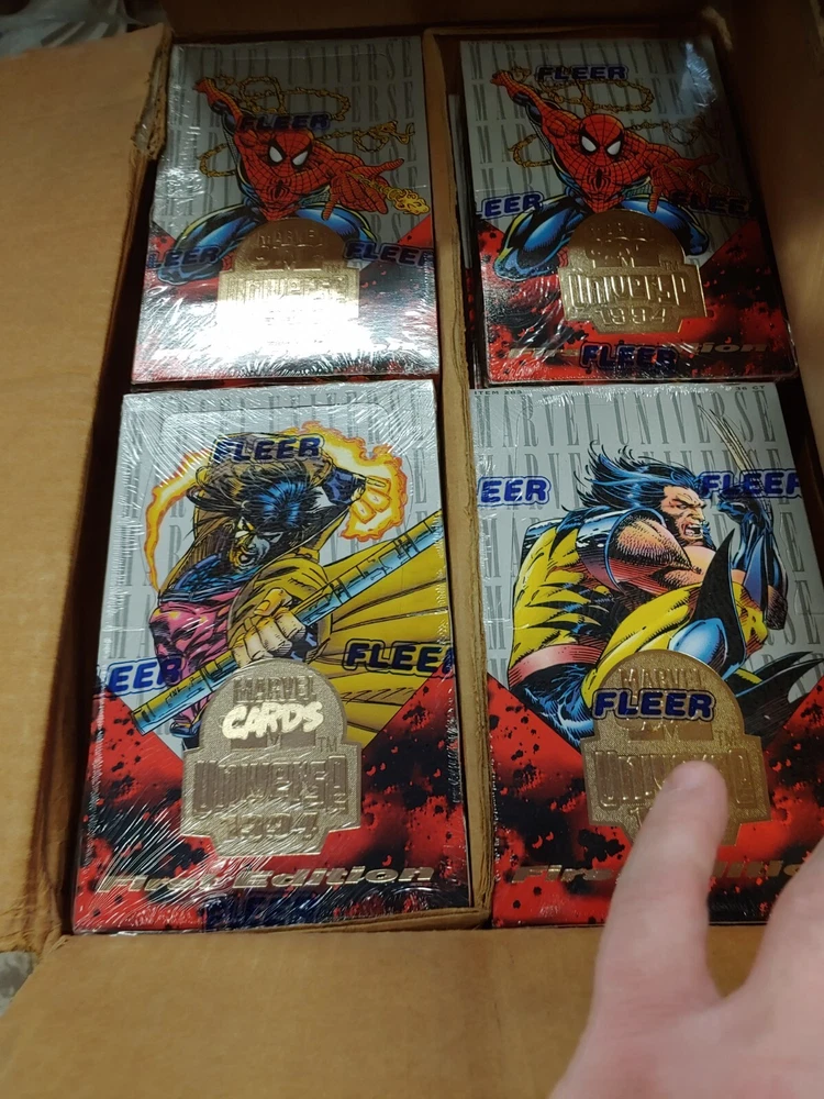 Very RARE 1994 Fleer 1st Edition Marvel Universe Factory sealed boxes. This price will be for 4 FOUR boxes. It will be one box of each of the cover art characters. 1x Wolverine 1x Gambit 1x War Machine 1x Spider-Man.