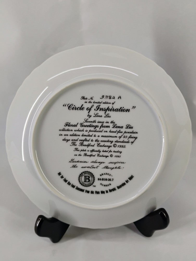 This beautiful collector plate from Bradford Exchange is a wonderful addition to any collection. The "Circle of Inspiration" plate, featuring floral greetings from Lena Liu, is made of porcelain and has a diameter of 7 1/2 inches. Its round shape and decorative style make it perfect for display on any occasion. The plate was produced in the late 20th century (1990-1999) and is considered vintage. Its production style is art pottery and its production technique is pottery. The plate is part of the "Floral Greetings from Lena Liu" product line. Its multicolor design and intricate details make it a unique and cherished item for any collector. Thank you for visiting my listing today and thank you for your interest in this item! My goal is to have a pleasant transaction resulting in a satisfied customer. I hope any transaction between us leaves you with a feeling of confidence knowing you can trust me and the items I offer here. *Most if not all my listings are set to accept offers. Feel free to send an offer and I will be happy to consider it!! *Please contact me with any questions or concerns and I will be happy to help. *Always examine the photos carefully, and if in doubt, email me with any questions you may have. *Please note that condition statements are offered as a guide only. They will always be somewhat subjective and reflect our opinion, which may not necessarily agree with someone else's opinion. PLEASE READ: I aim to please and I want my buyers to have a positive transaction with me. If you have questions, concerns, or special requests related to any of my items I hope you will contact me so we can work them out to your satisfaction. I sell my items to give you a great item at a decent price while making a little profit at the same time. If you feel the item you are interested in is too pricey do not hesitate to send me a fair offer and I will consider it. My goal is to satisfy your needs and mine so both parties can benefit. SHIPPING: If you prefer a different shipping method or company please contact me and I will do all I can to make that happen. If you have concerns or requests about the packaging of your item contact me and I will do all I can to accommodate them. Shipping costs are based on location in each state or country, the costs always differ. After I have received your payment I will ship your item out within 3 business days or less excluding weekends and holidays. BEFORE PURCHASING & BIDDING: **Please see all the pictures. I do not have great photography skills but I try to get the most accurate photos I can. If you are unsure about something you see in a photo contact me so I can do what I am able to answer your concern about the item. **I cannot stress enough that if you have any questions or concerns please contact me before purchasing and bidding. Communication can solve so much. **As a customer myself, I understand the meaning of customer satisfaction and my goal is to have nothing but satisfied customers. If you are not unsatisfied with your purchase I ask that you please contact me so I can take care of your issue. My goal is for you to be 100% satisfied. INTERNATIONAL BUYERS WELCOMED - PLEASE NOTE: I welcome International buyers! Please be aware that any custom/duties/taxes that the parcel might incur once it is out of the USA are the responsibility of the buyer. Please check with your country's customs office to determine what these additional costs will be prior to bidding or buying. Please refer to the eBay Site Map for more information if needed.