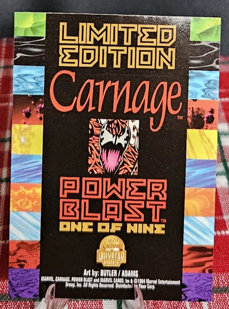 This 1994 Marvel Universe trading card set features two of the most infamous Characters in the Marvel universe, Carnage and Gambit. With vibrant rainbow foil designs, these cards are a must-have for any collector or fan of the superhero genre. Manufactured by Fleer, this set is a great addition to any collection and is sure to impress. The set includes two cards, both featuring the iconic villains in action. The cards are from the non-sport trading card genre and are a part of the Marvel Cinematic Universe franchise. Released in 1994, this set is a great representation of the superhero genre and is sure to impress any collector. Add this set to your collection today!
