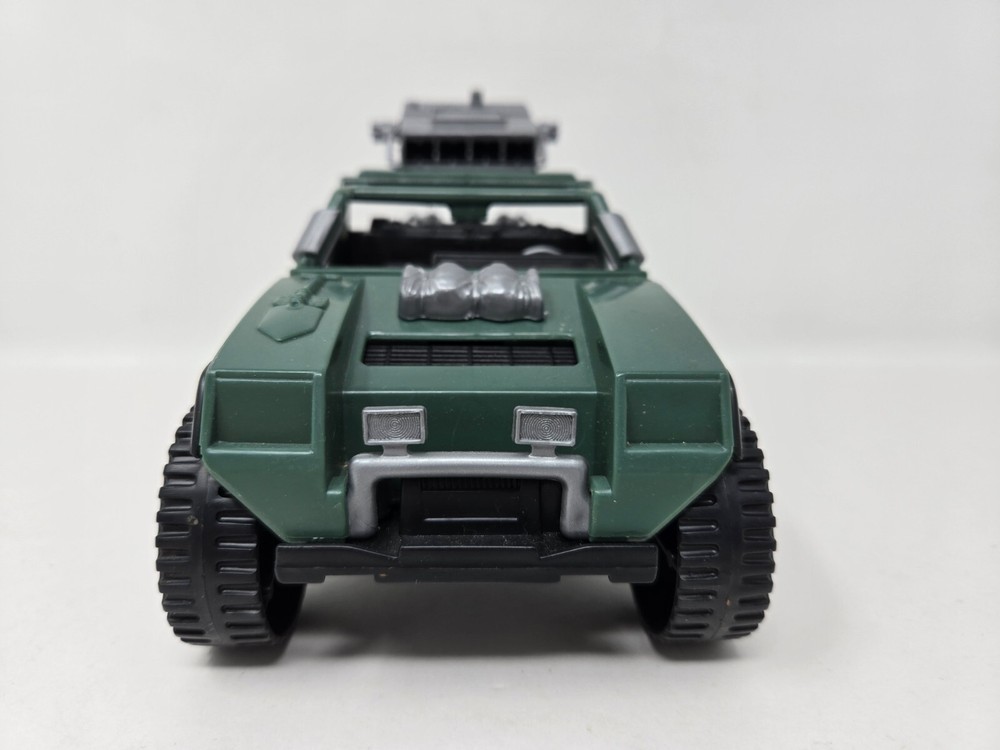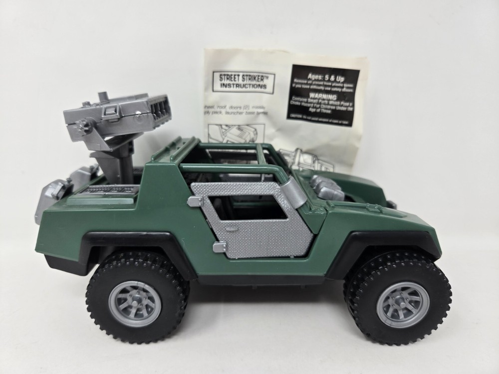 This vintage 1994 Street Fighter movie GI Joe action figure vehicle represents Striker, the jeep from the G.I. Joe A Real American Hero TV show. The Jeep vehicle in a 1:18 scale, featuring a multicolor design with plastic material. It is part of the G.I. Joe franchise by Hasbro and includes everything shown, such as the instruction sheet. This collectible piece offers a nostalgic feel as a vintage item from the 1990s, making it a sought-after addition for fans of military and adventure-themed toys. INCOMPLETE, but in Very Good condition. Even has the instruction sheet. All of our items are shipped from a SMOKE-FREE environment.