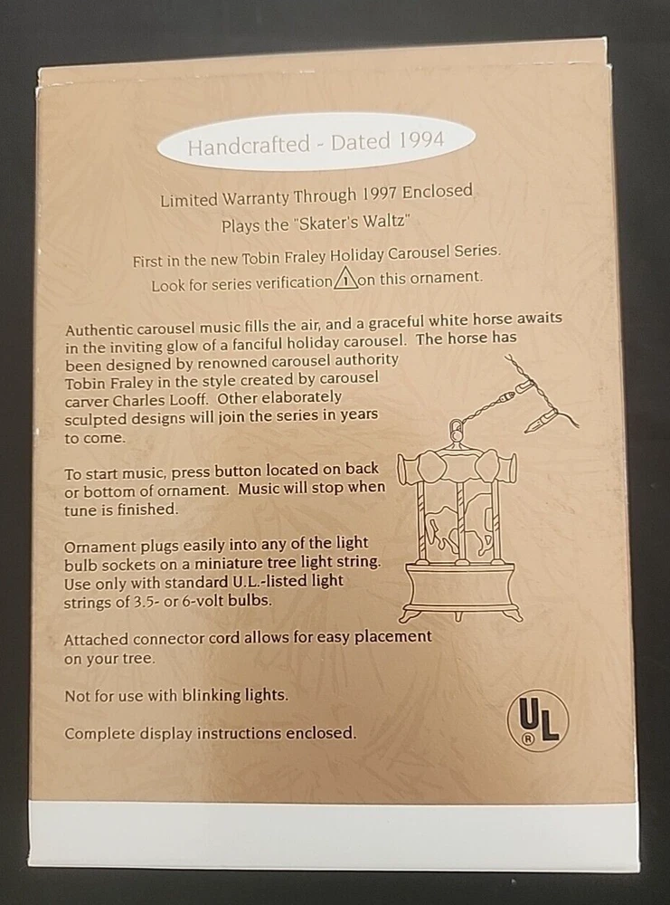 Set Includes: Ornament Year Manufactured: 1994 Occasion: Christmas Theme: Christmas Collection: Ornaments Subject: carousel MPN: QLX7496 Brand: Hallmark Features: Light Up, Musical Type: Ornament